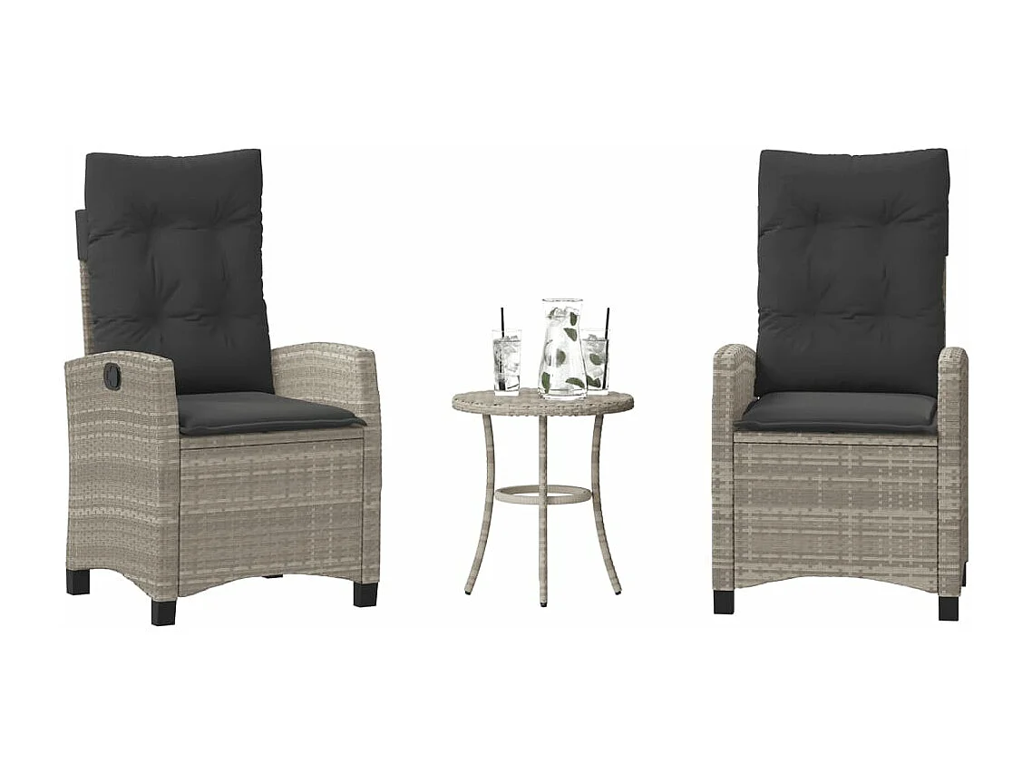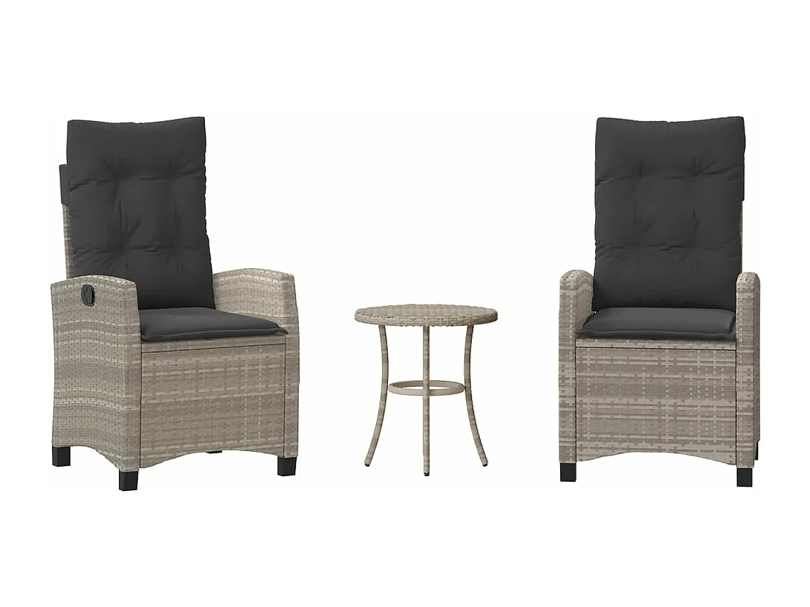 Ensemble de bistro 3 pièces et coussins gris clair résine tressée