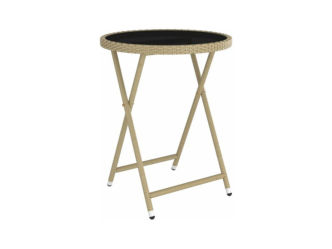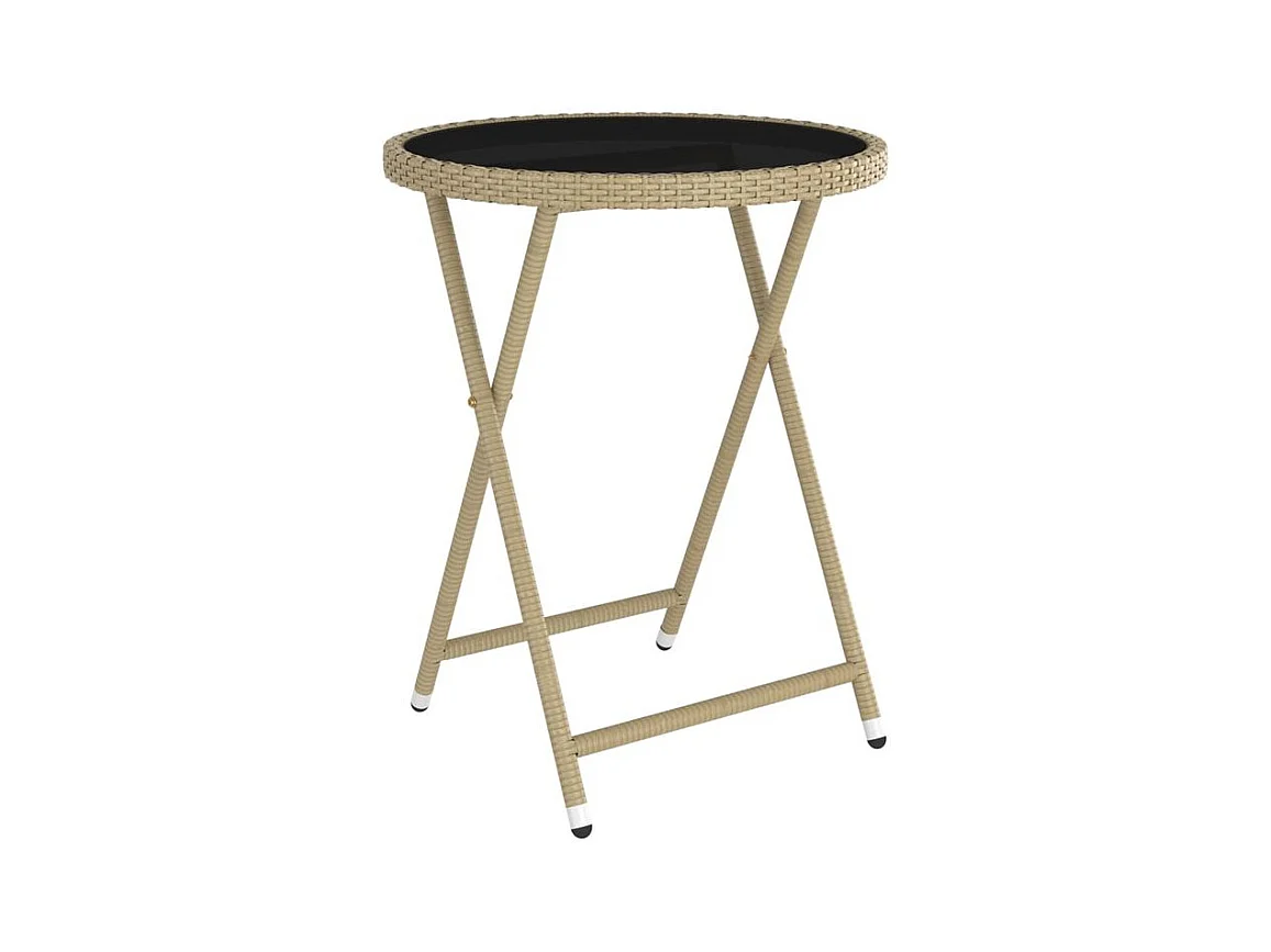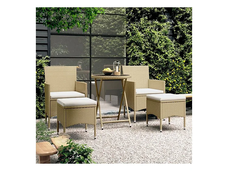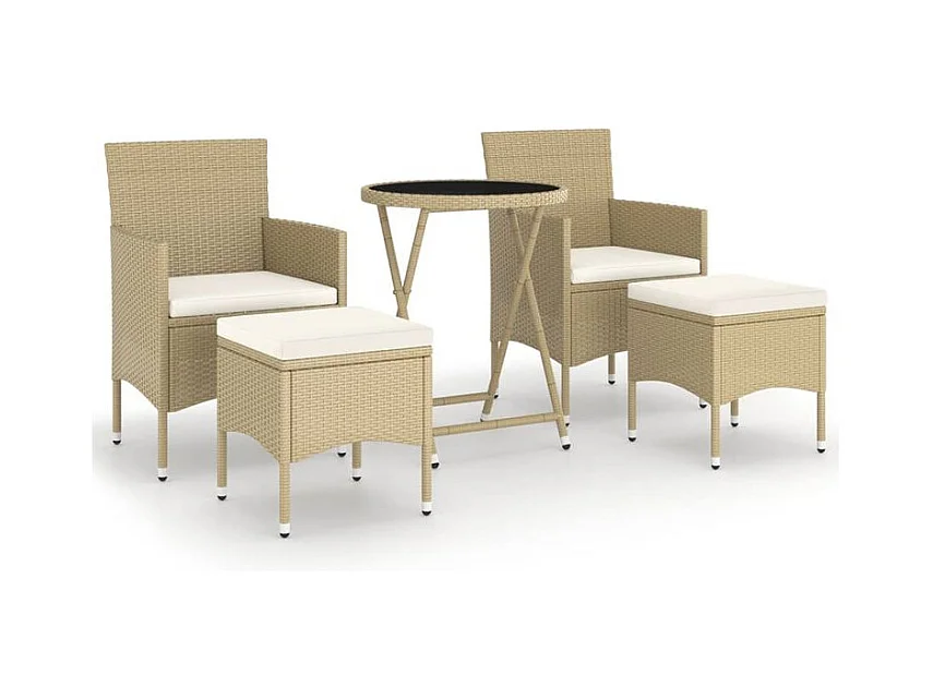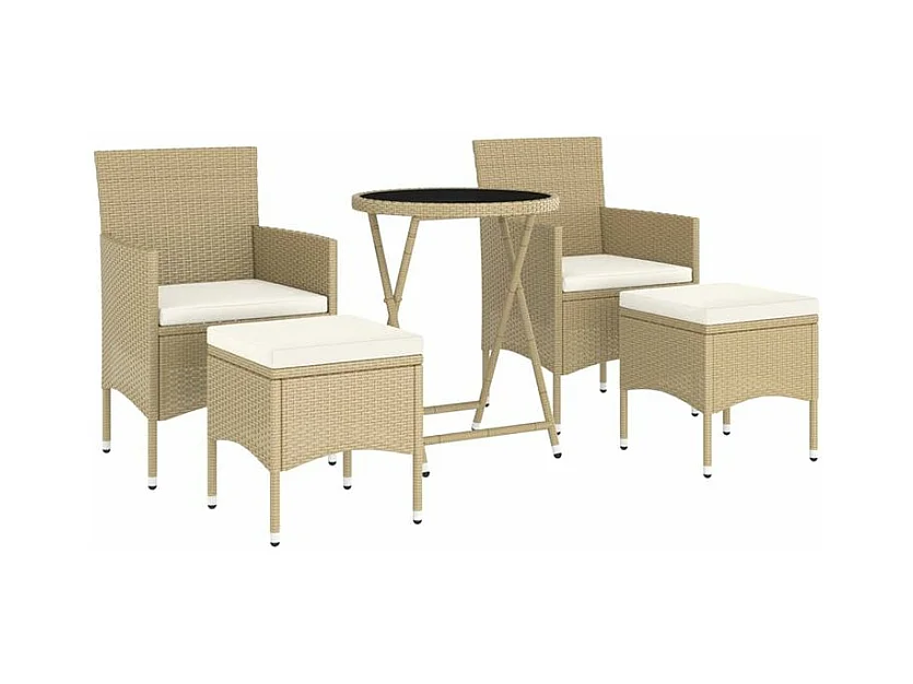 Ensemble de bistro 5 pcs Résine tressée et verre trempé Beige