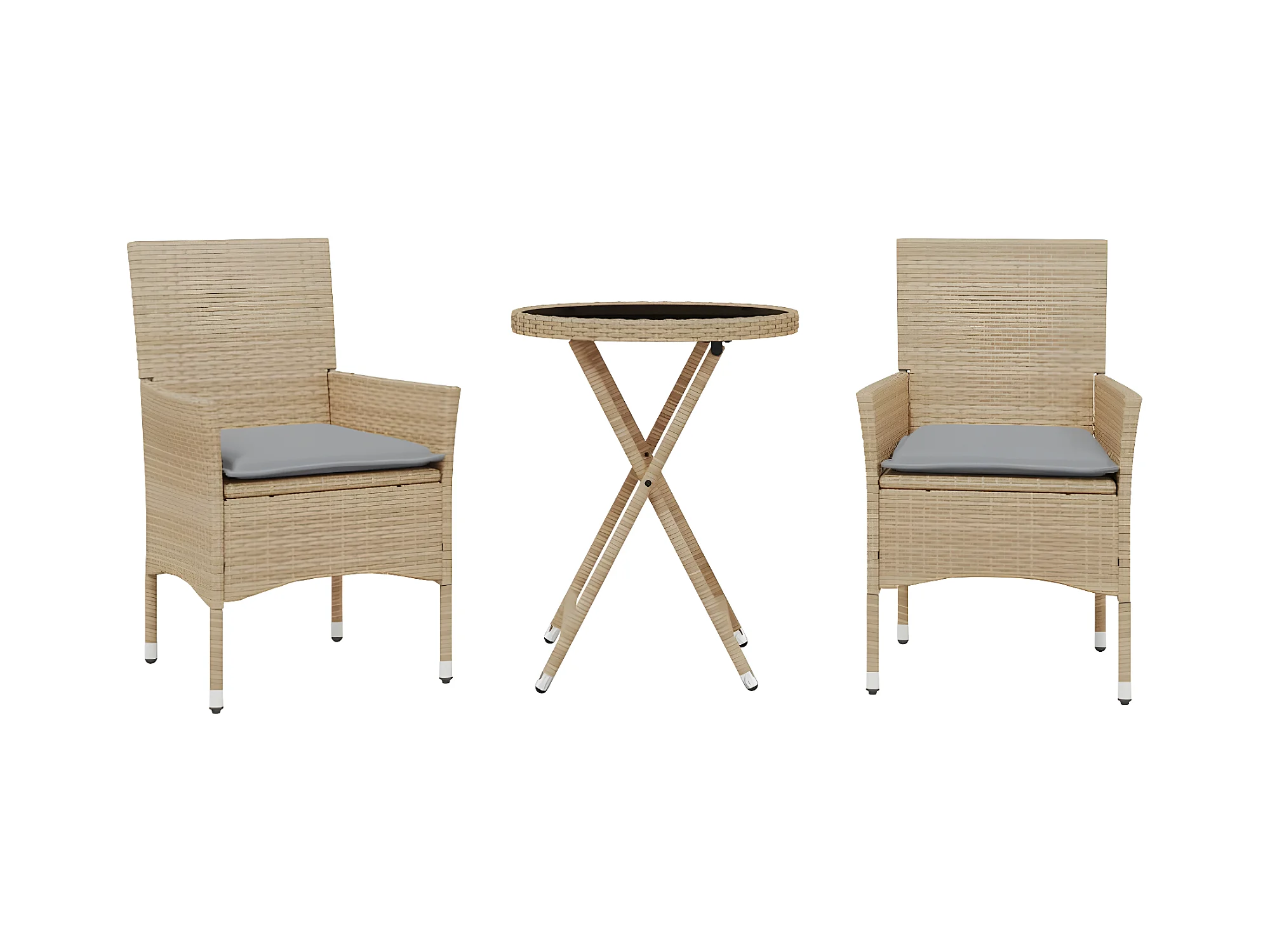 Ensemble de bistro avec coussins 3 pcs beige rotin et verre