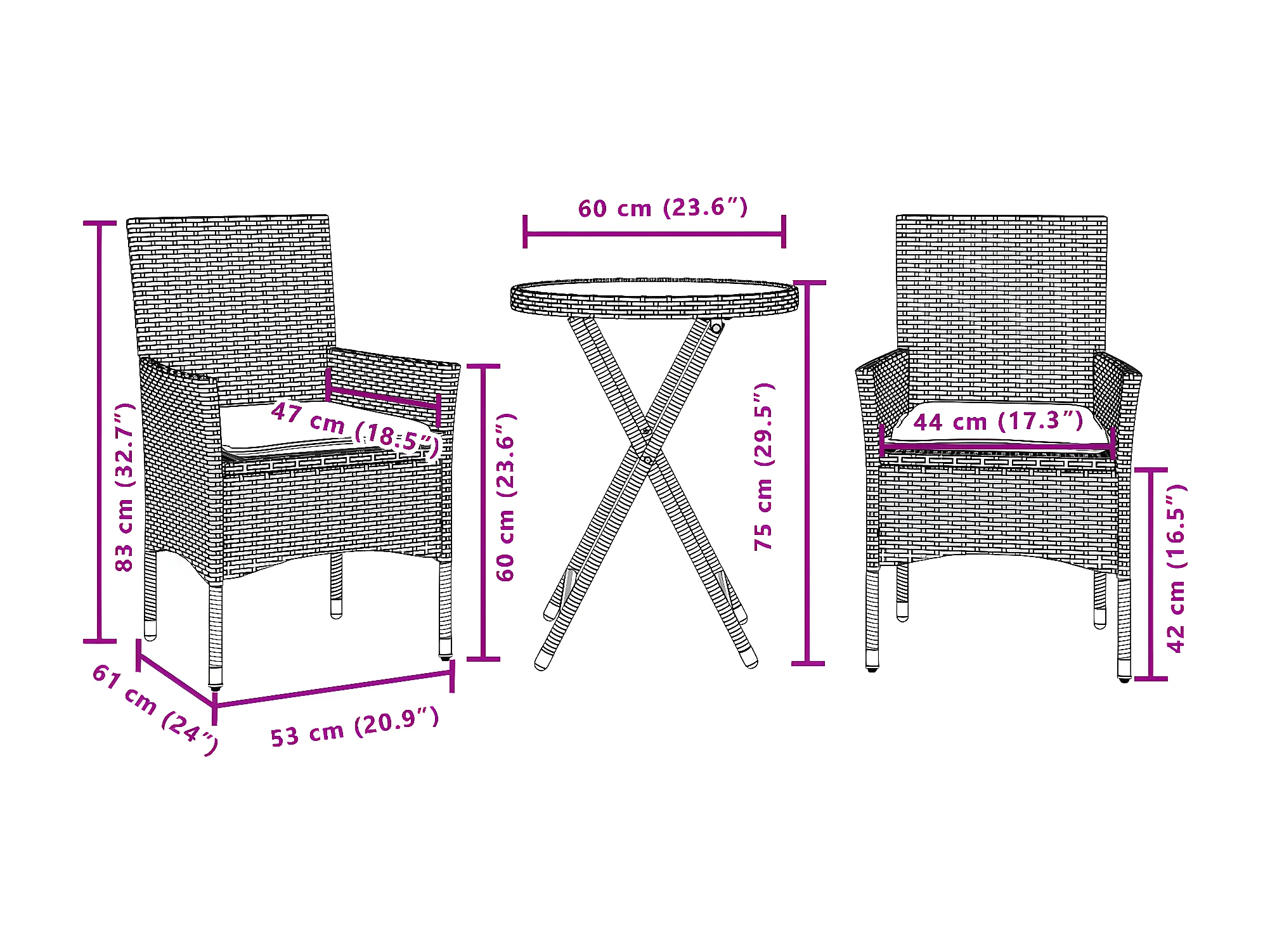 Ensemble de bistro avec coussins 3 pcs beige rotin et verre