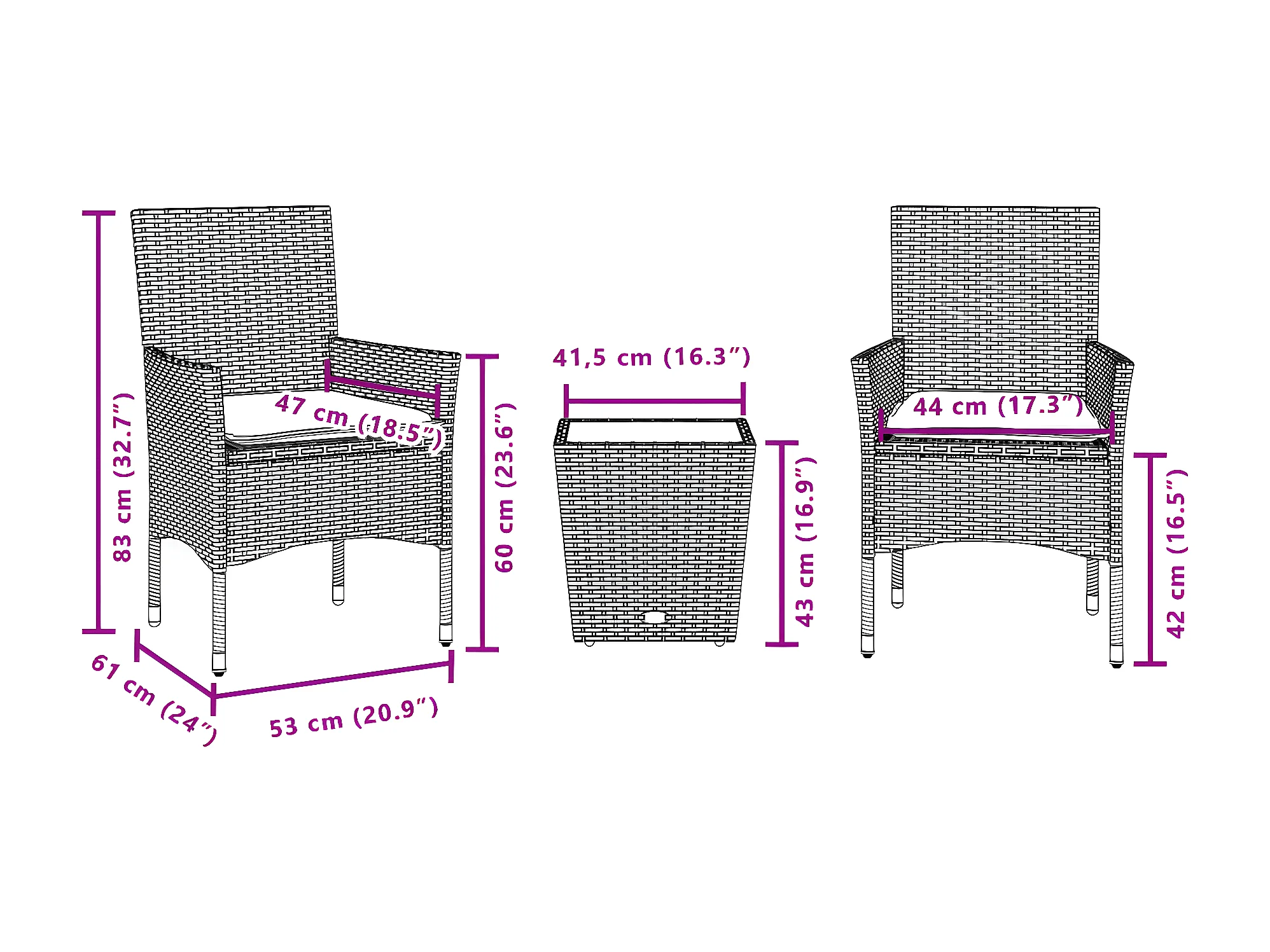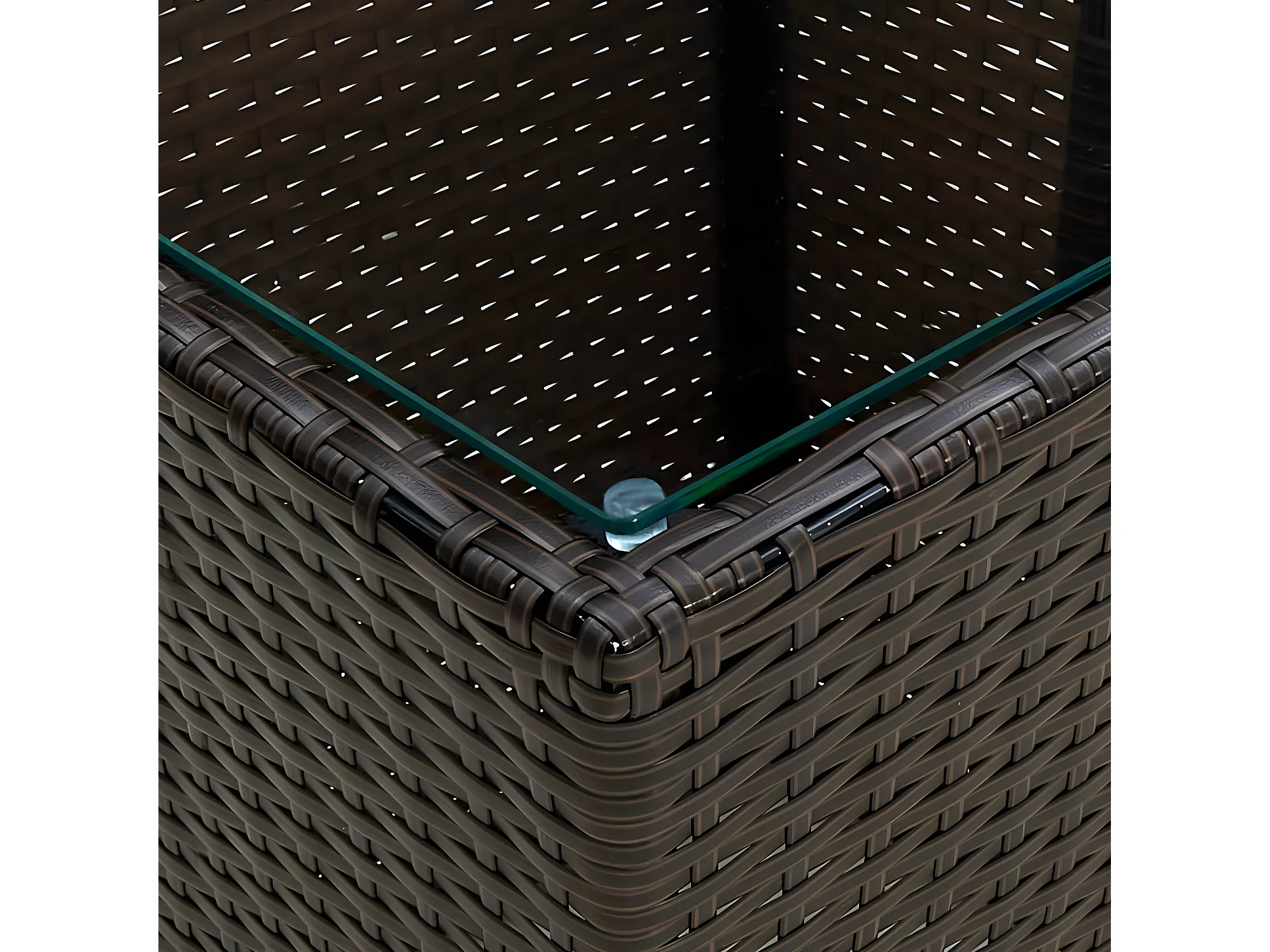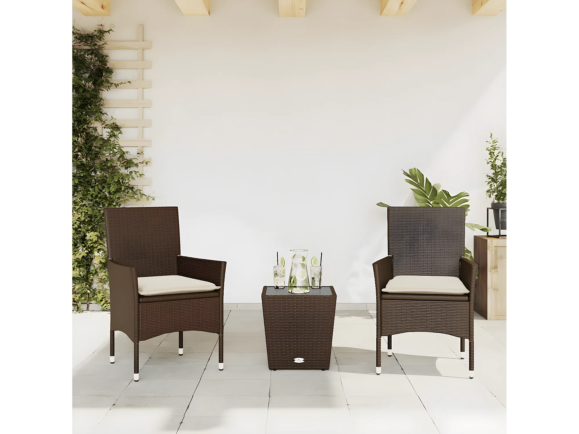 Ensemble de bistro avec coussins 3 pcs marron rotin et verre