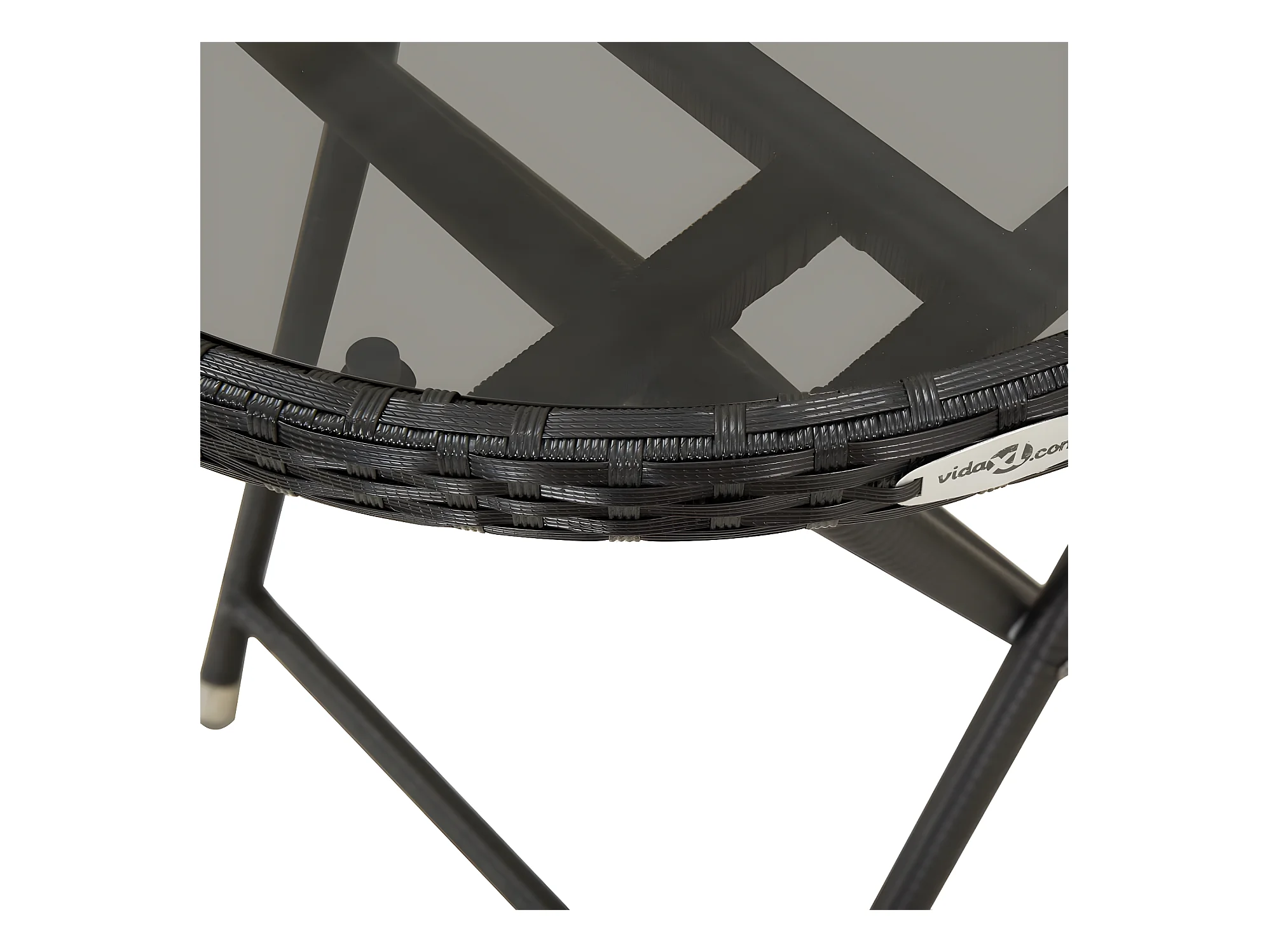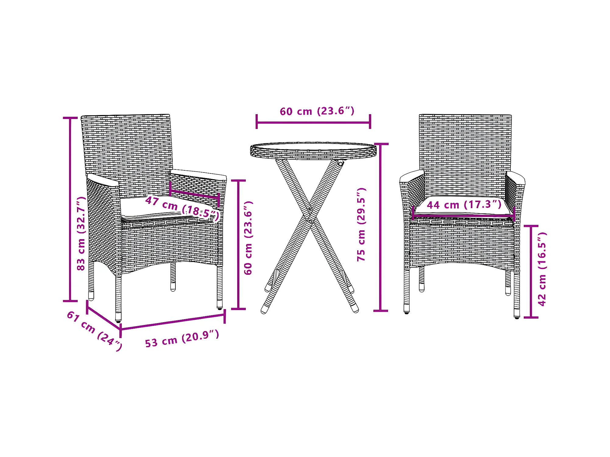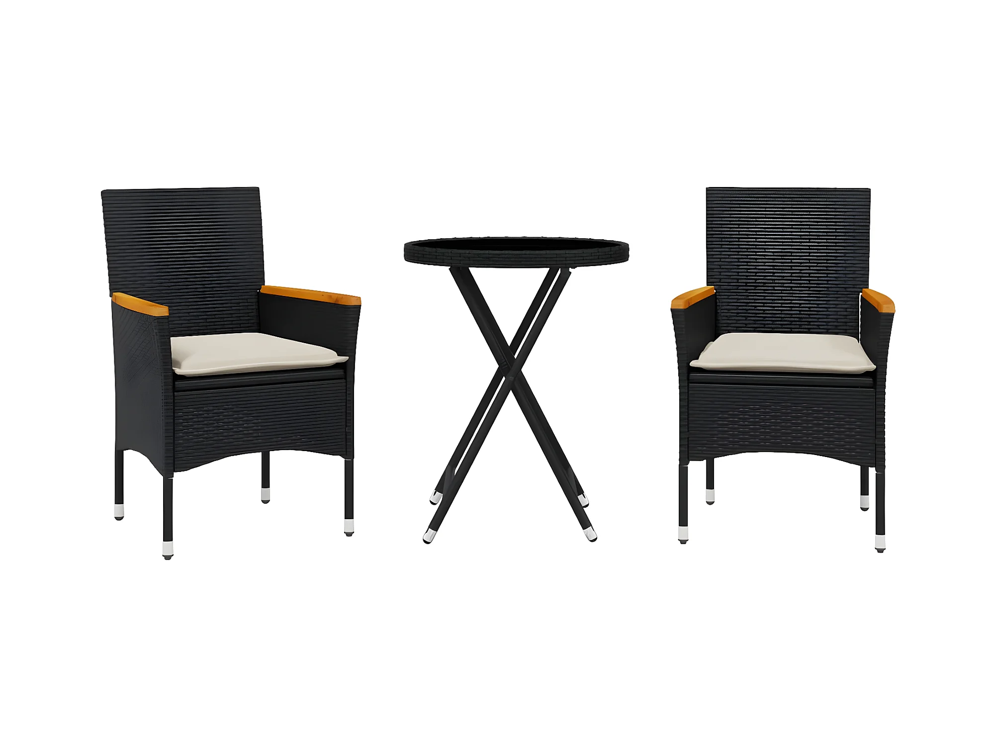 Ensemble de bistro avec coussins 3pcs noir résine tressée verre