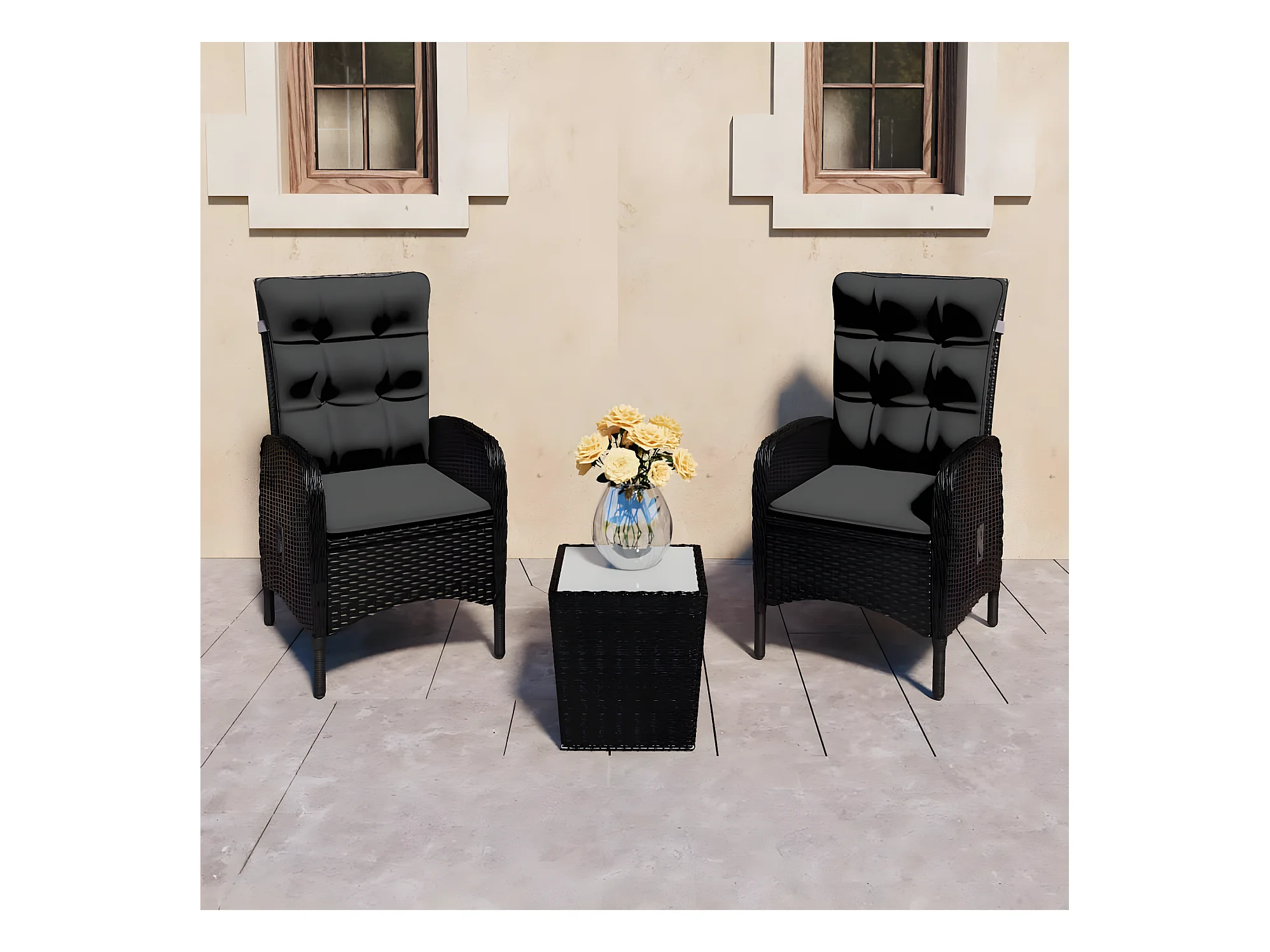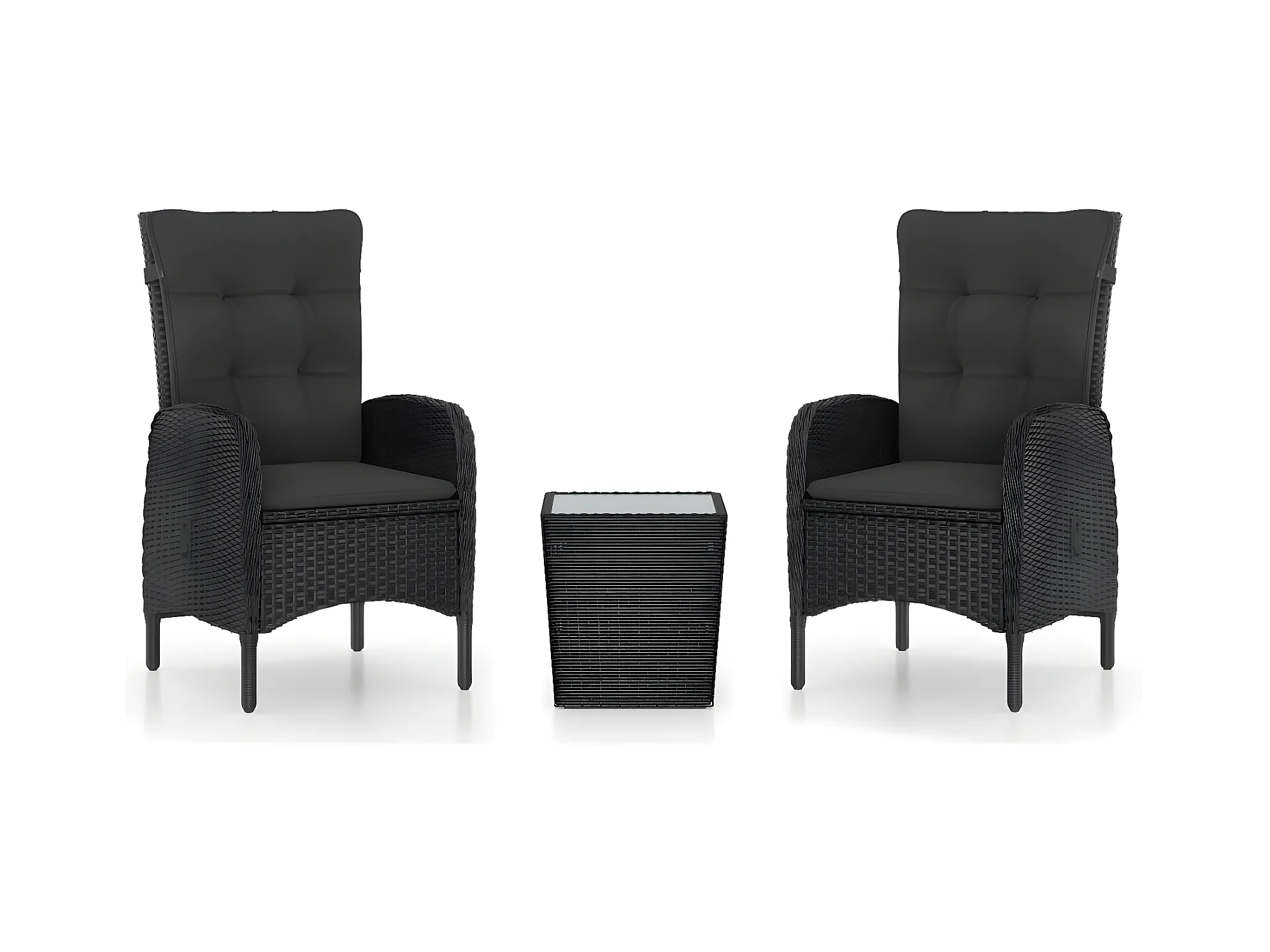 Ensemble de bistro de jardin 3 pcs Résine tressée et verre Noir GFDF51124