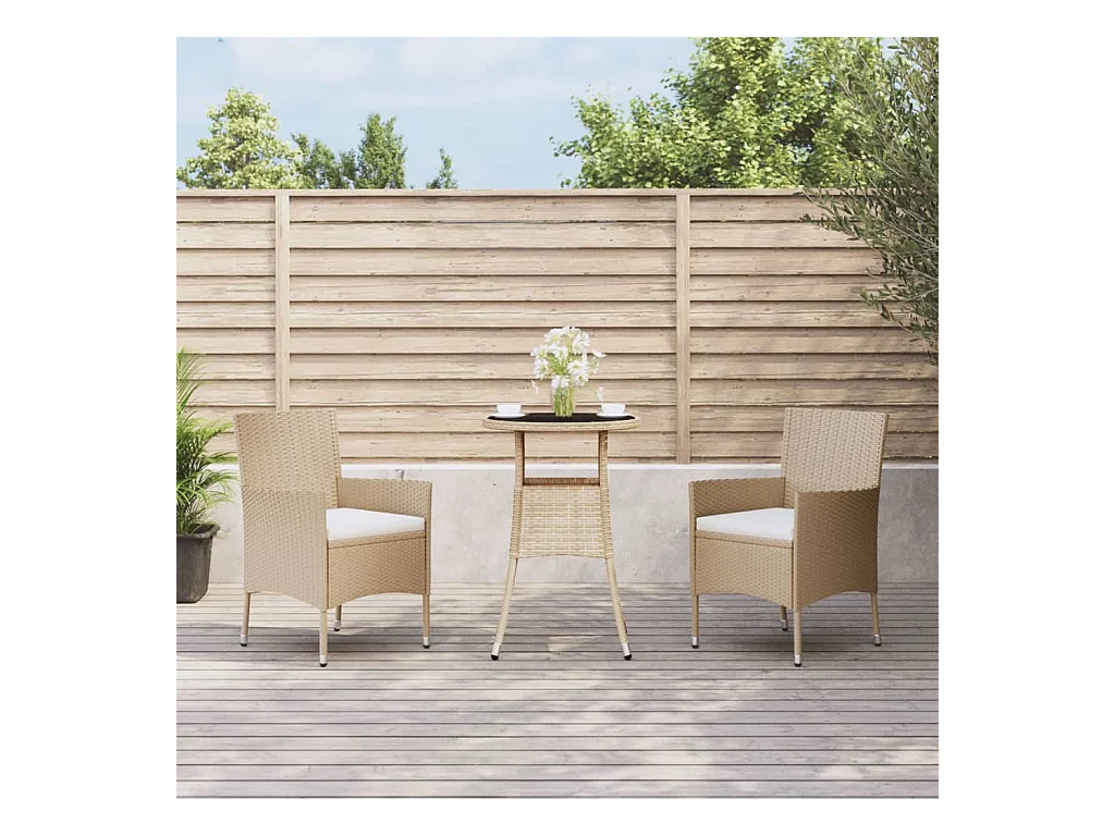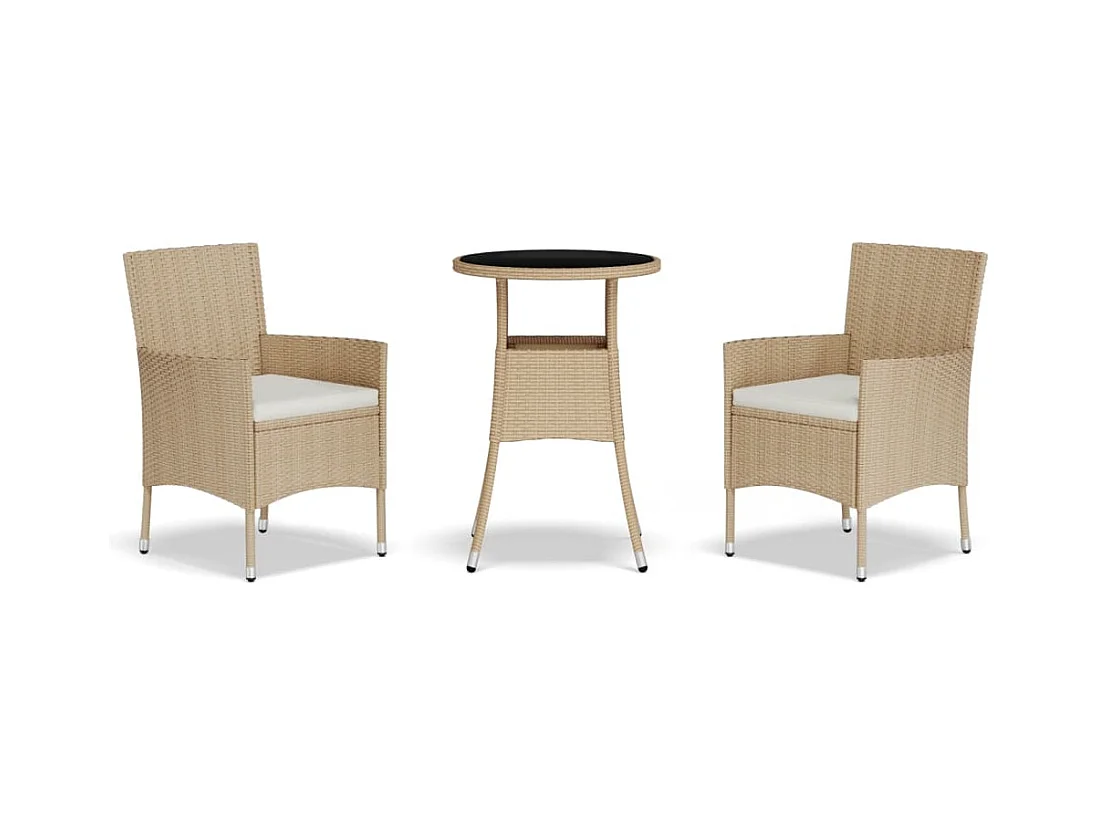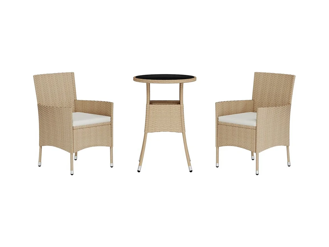 Ensemble de bistro de jardin 3 pièces coussins beige poly rotin