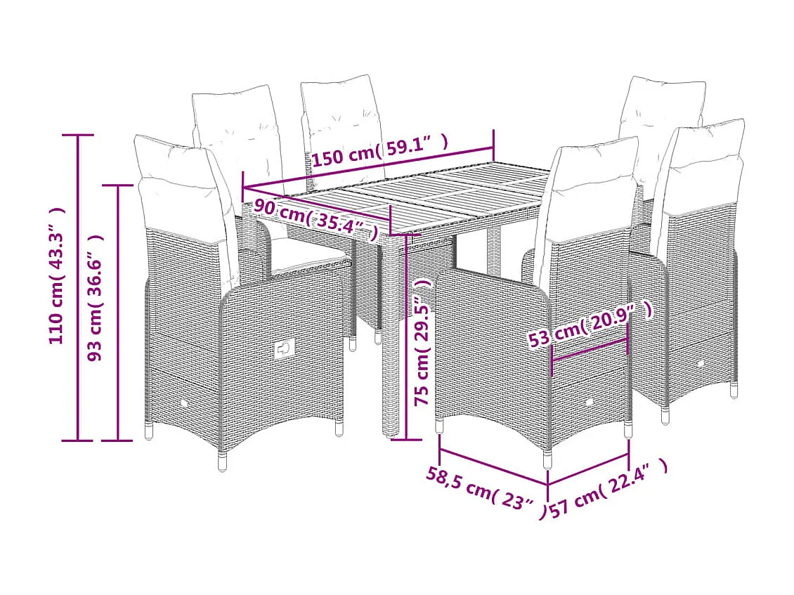 Ensemble de bistro de jardin 7 pcs coussins gris poly rotin