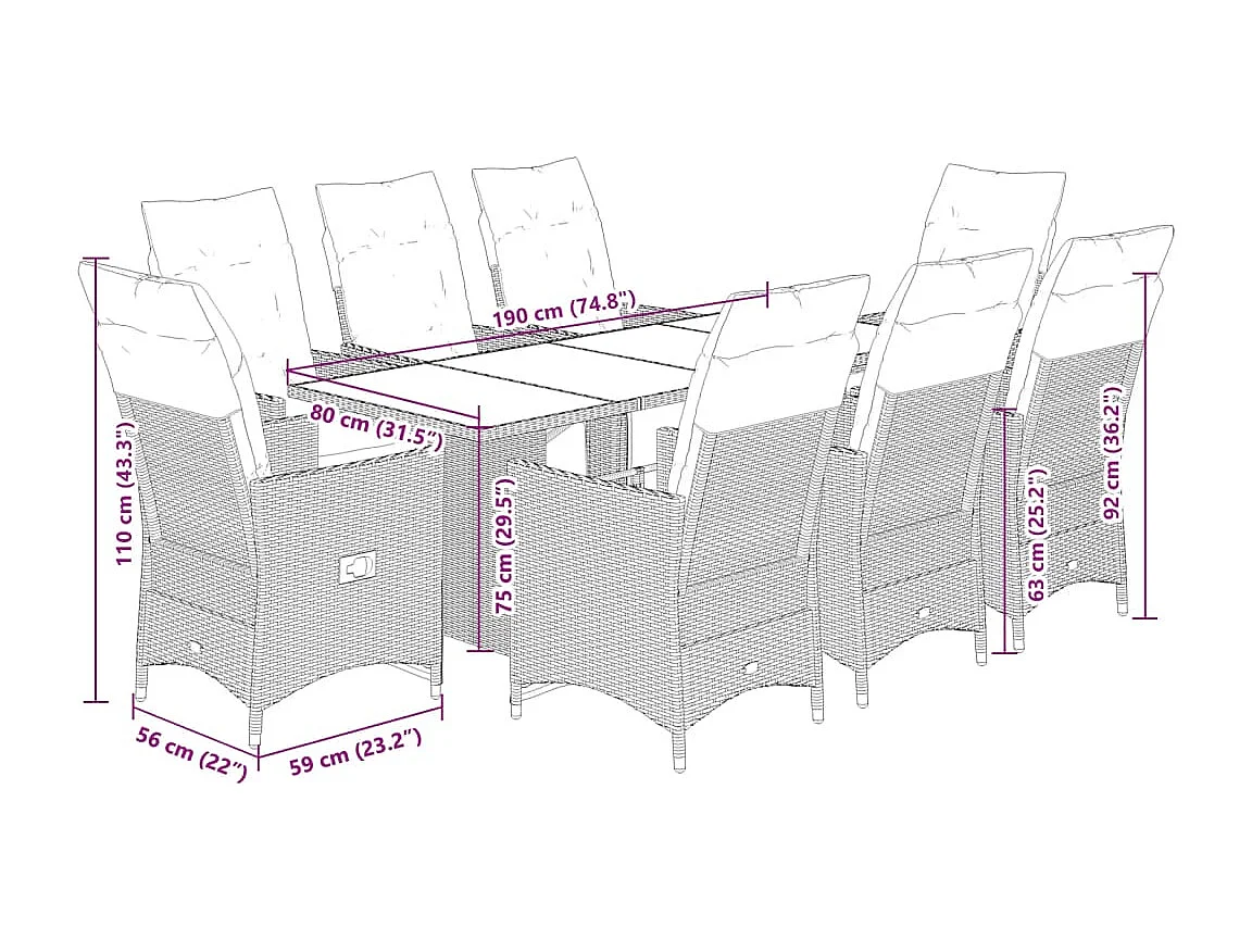 Ensemble de bistro de jardin 9 pcs coussins marron poly rotin