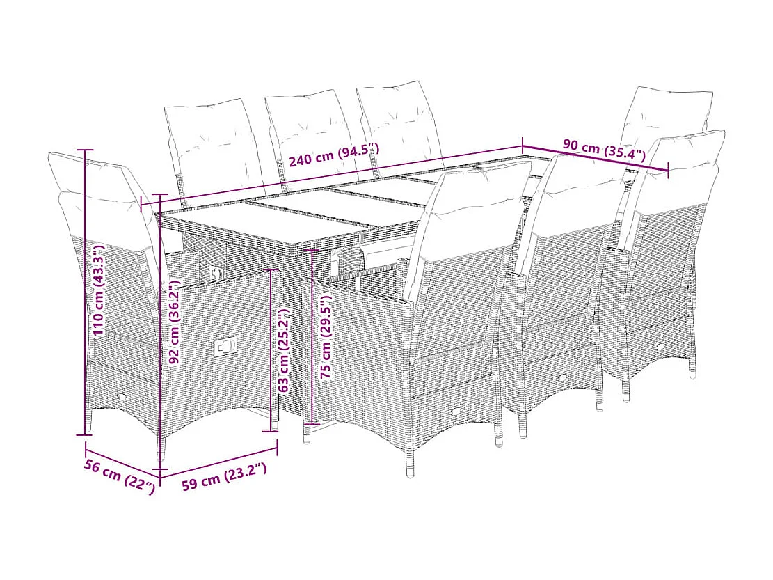 Ensemble de bistro de jardin 9 pcs coussins marron poly rotin