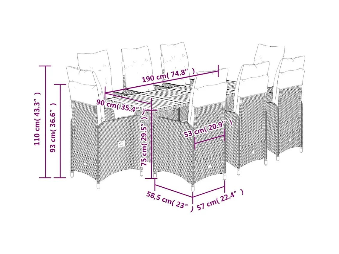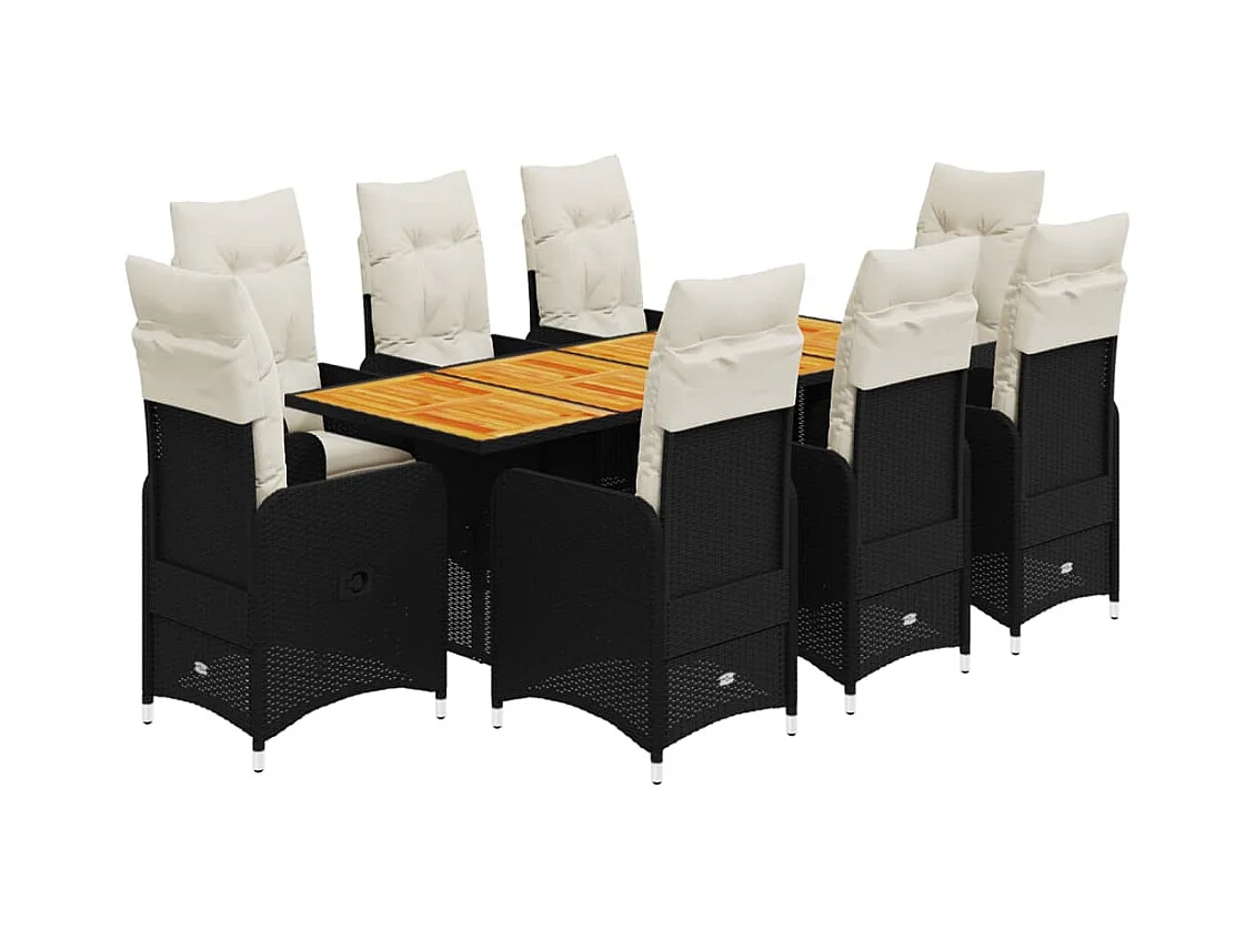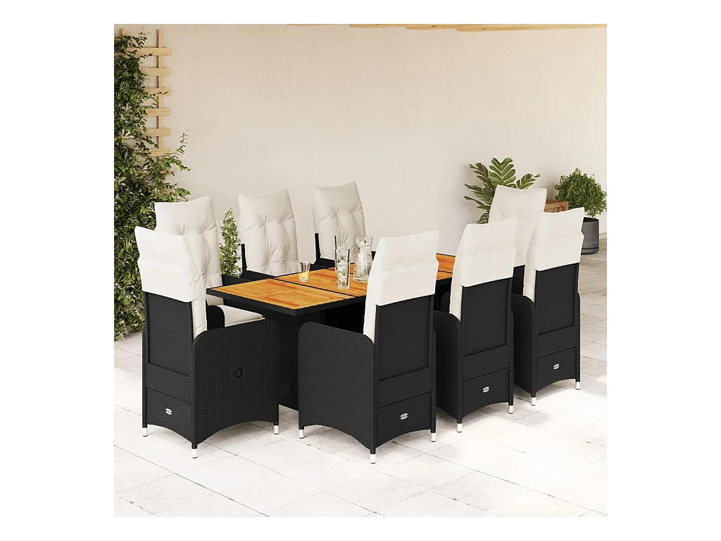 Ensemble de bistro de jardin 9 pcs coussins noir poly rotin
