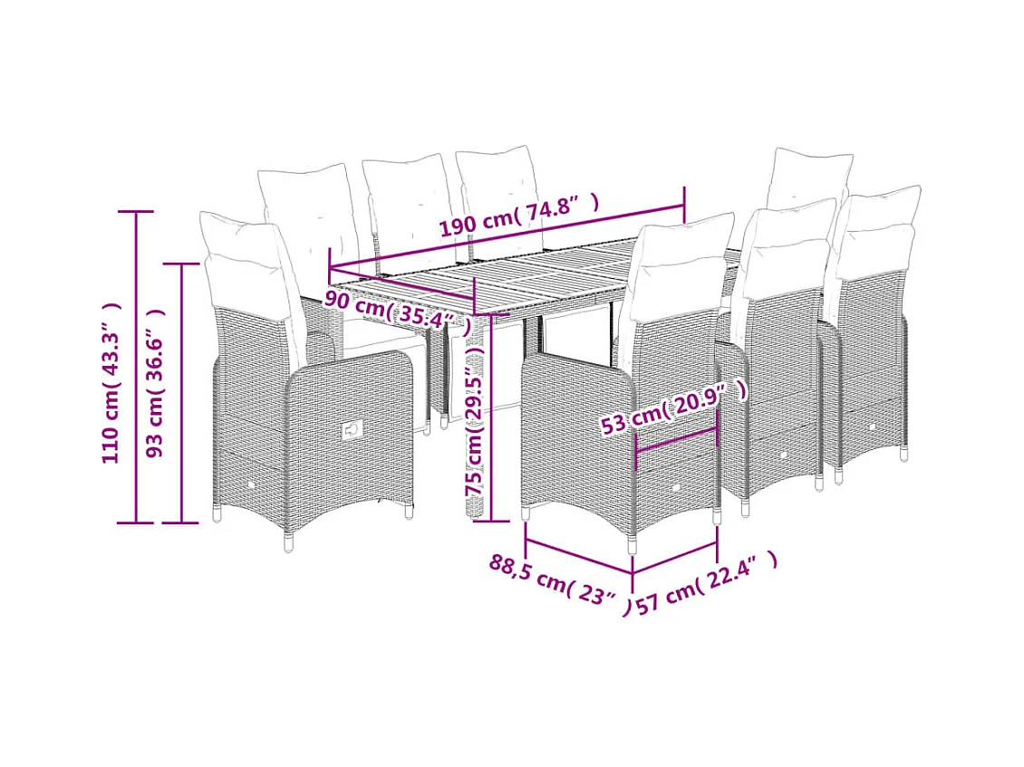 Ensemble de bistro de jardin 9 pcs coussins noir poly rotin