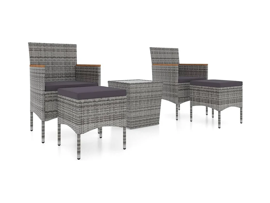 Ensemble de bistro jardin 5pcs Résine tressée verre trempé Gris