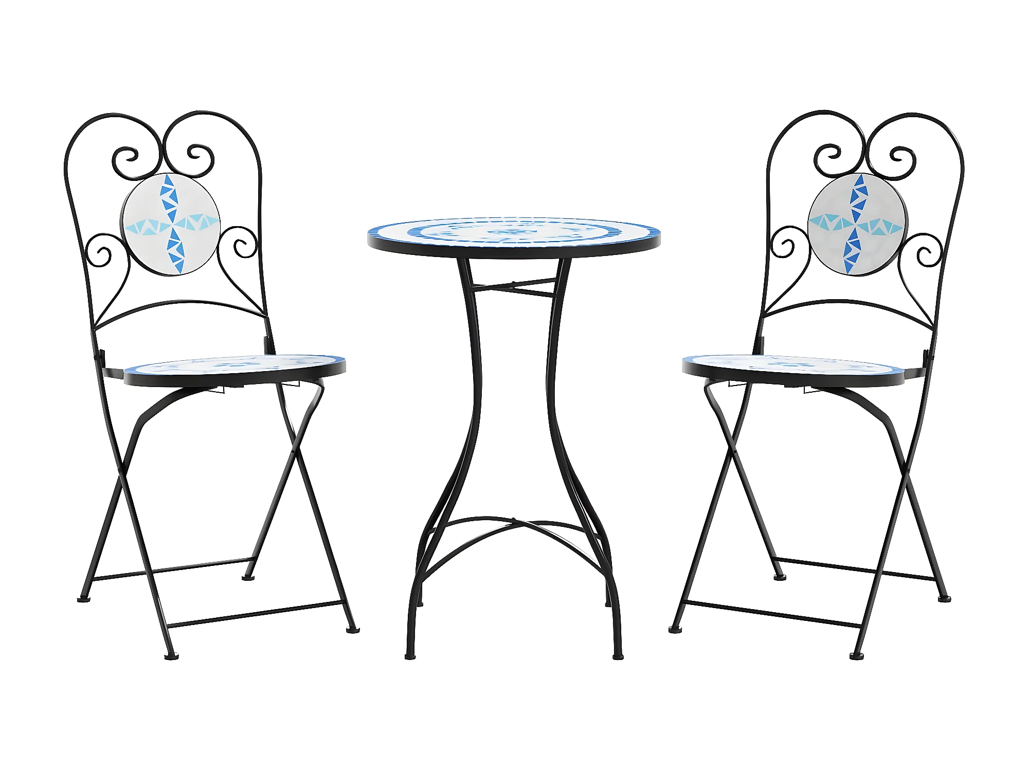 Ensemble de bistro mosaïque bleu et blanc fer et céramique