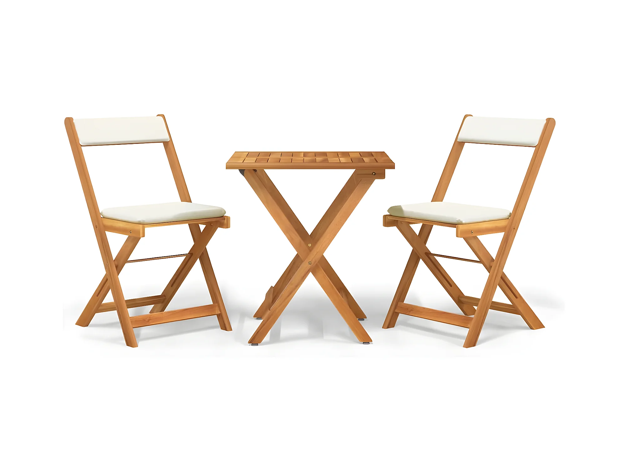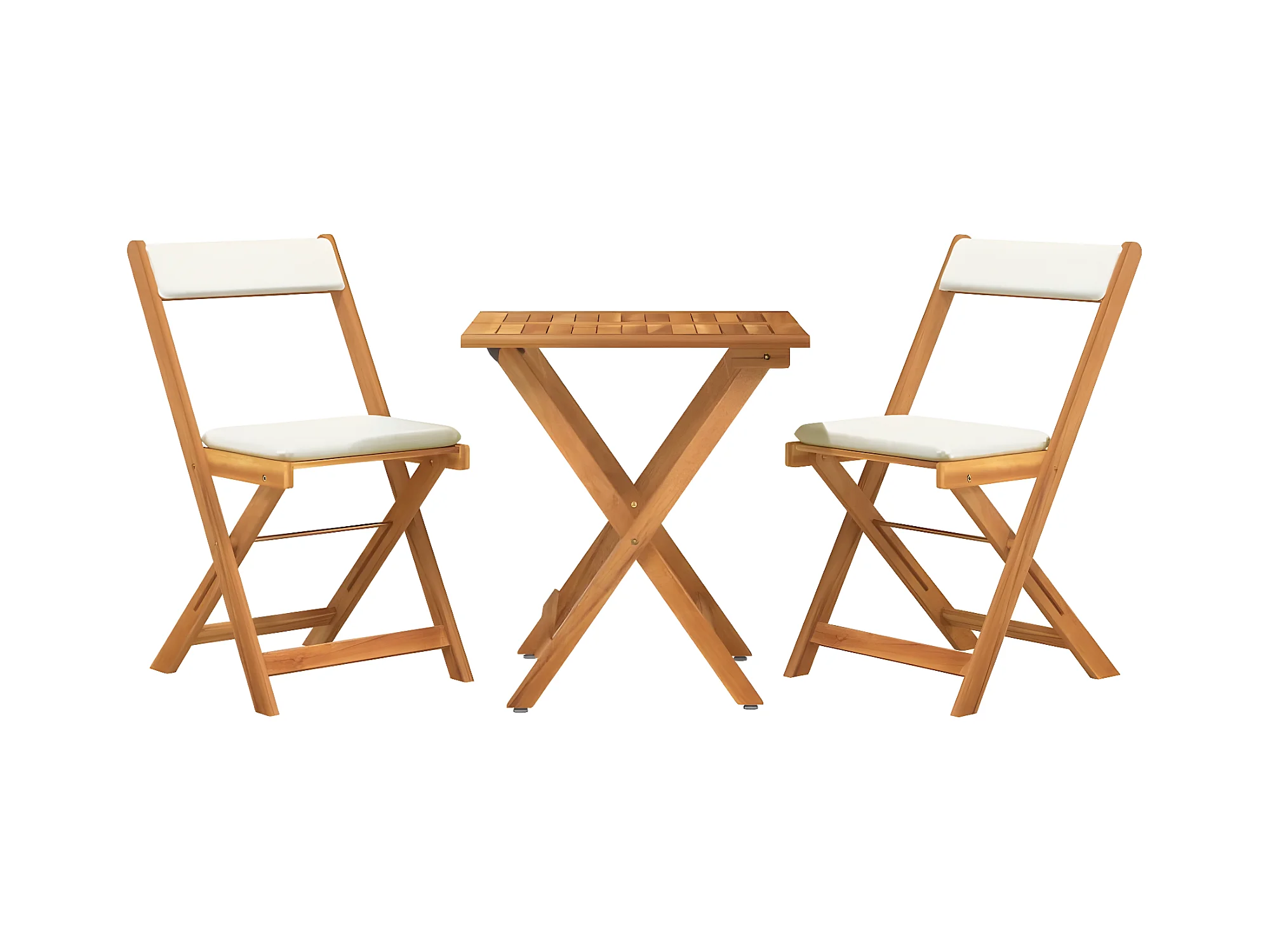 Ensemble de bistro pliable 3 pcs avec coussins Acacia solide GFDF49677