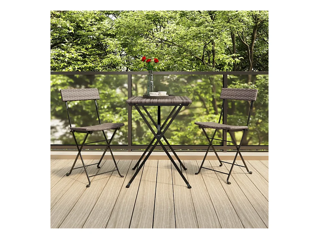 Ensemble de bistro pliable 3 pcs Gris Résine tressée GFDF52354