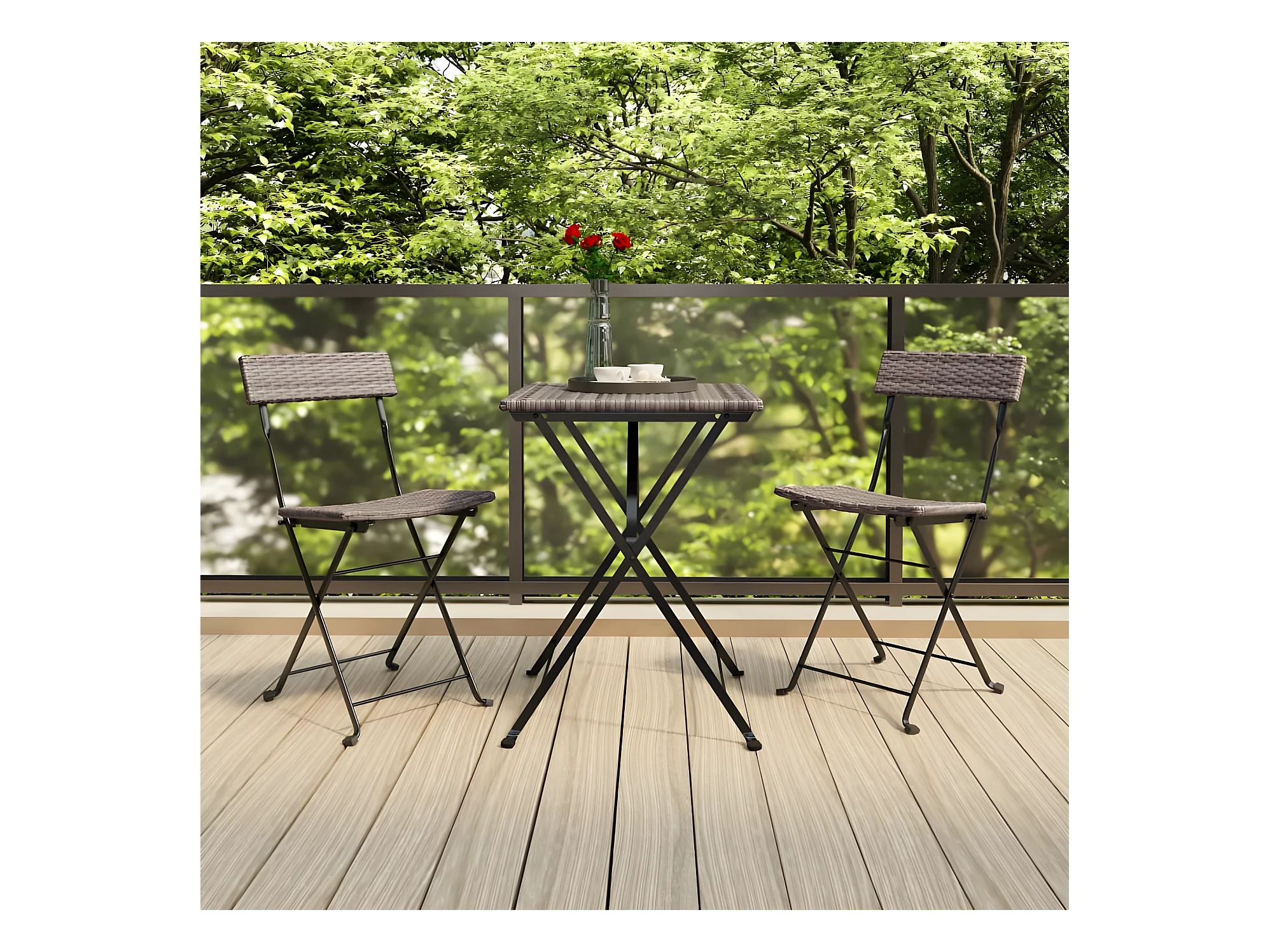 Ensemble de bistro pliable 3 pcs Gris Résine tressée GFDF52354