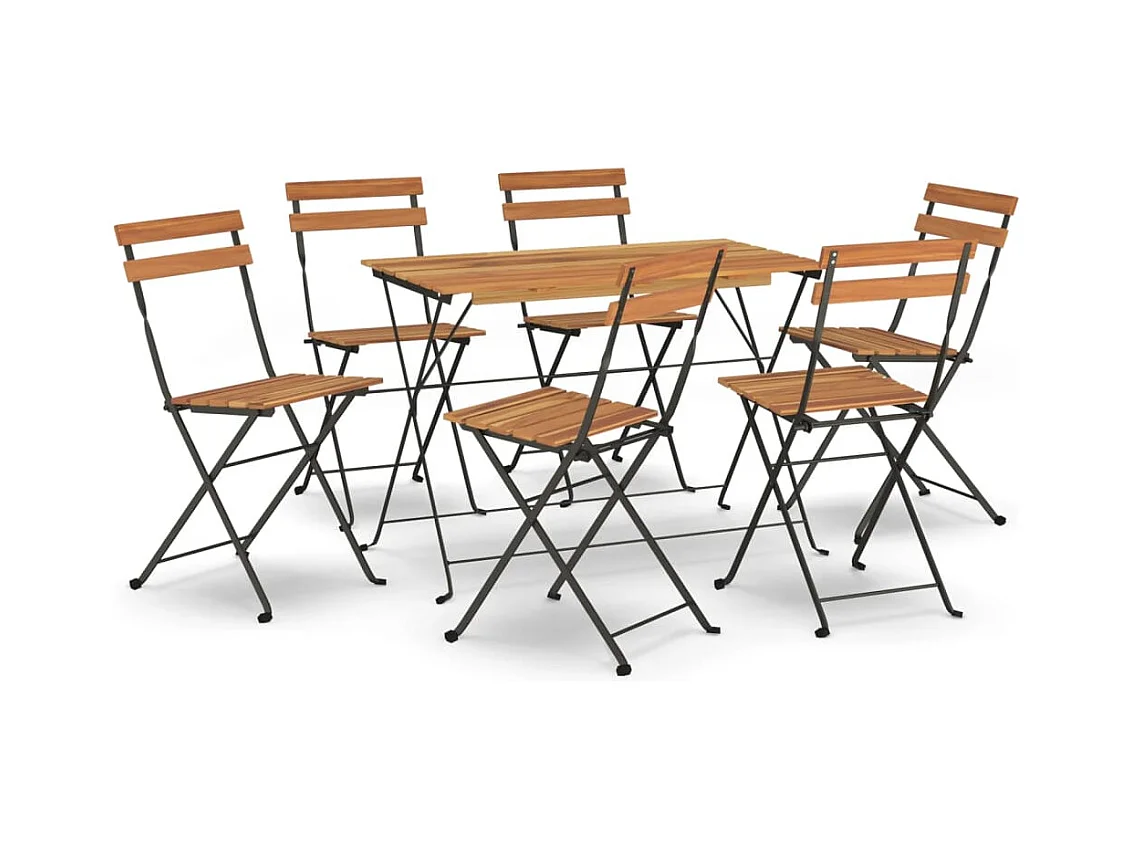 Ensemble de bistro pliable 7 pcs bois d'acacia solide et acier