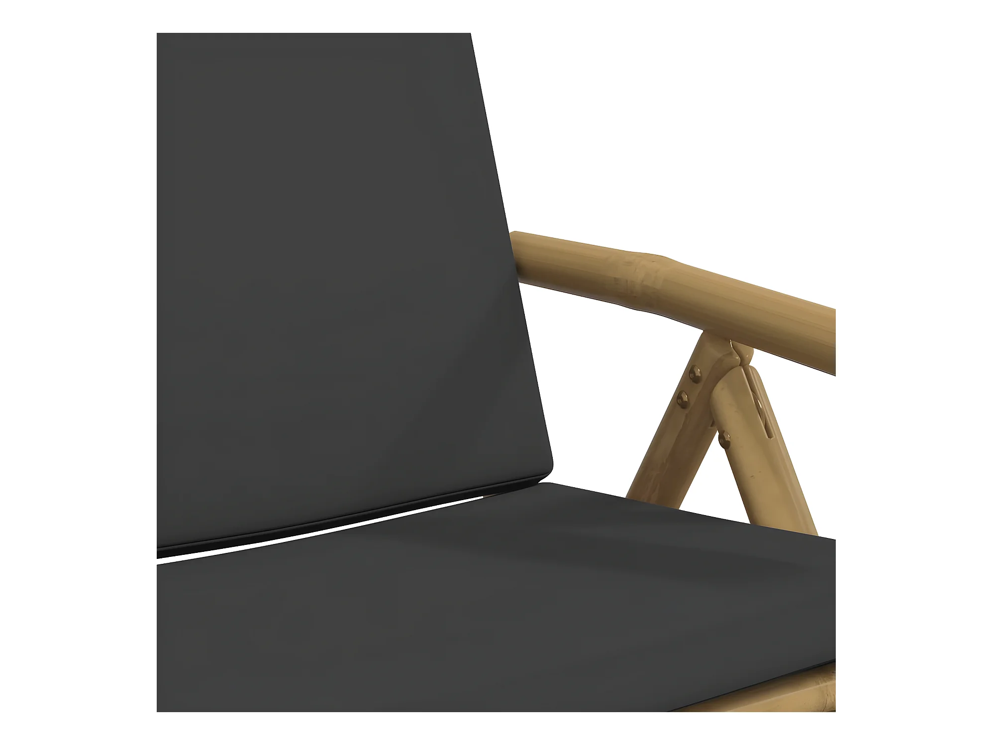 Ensemble de bistro pliante 3 pcs et coussins gris foncé bambou