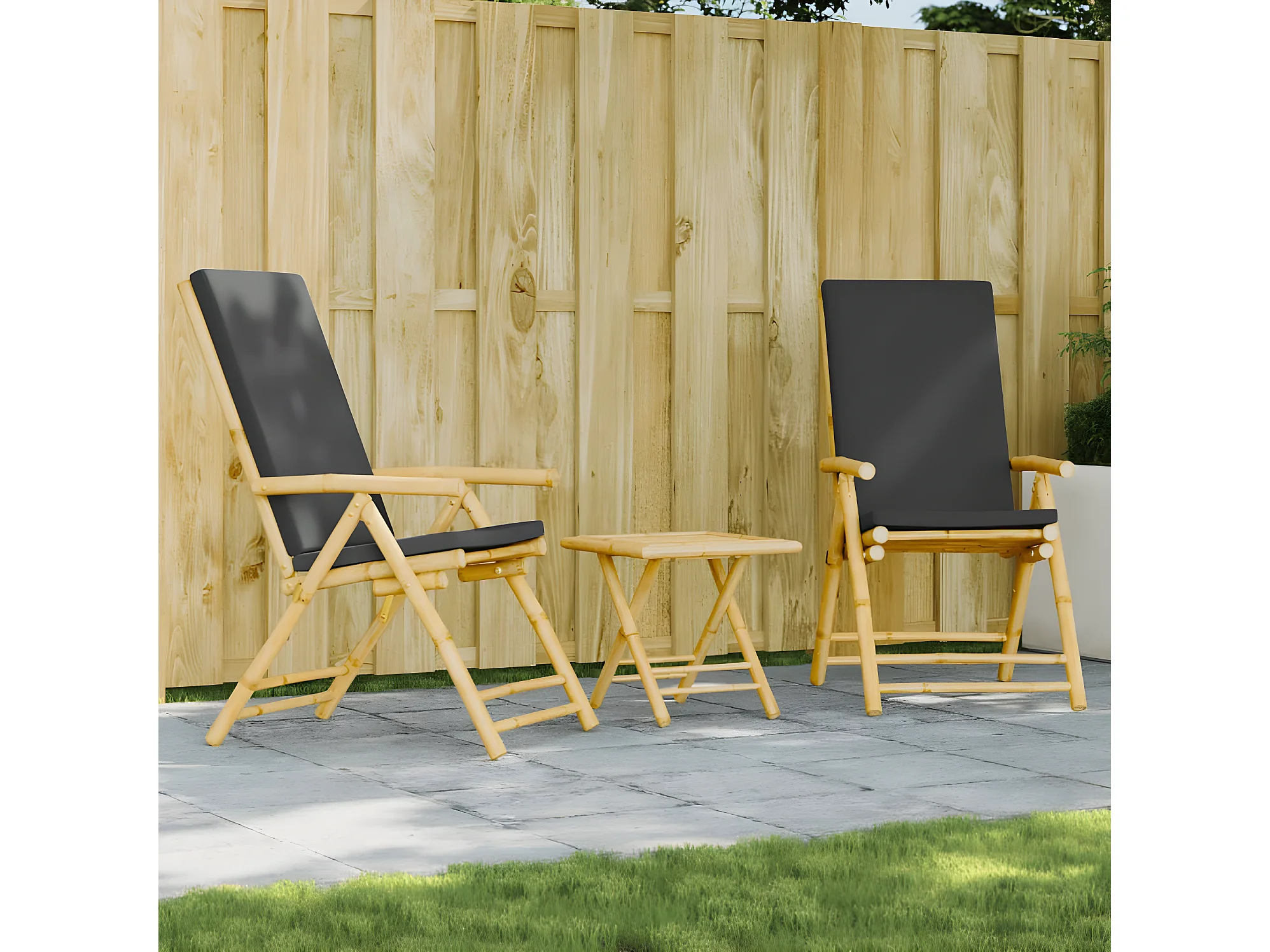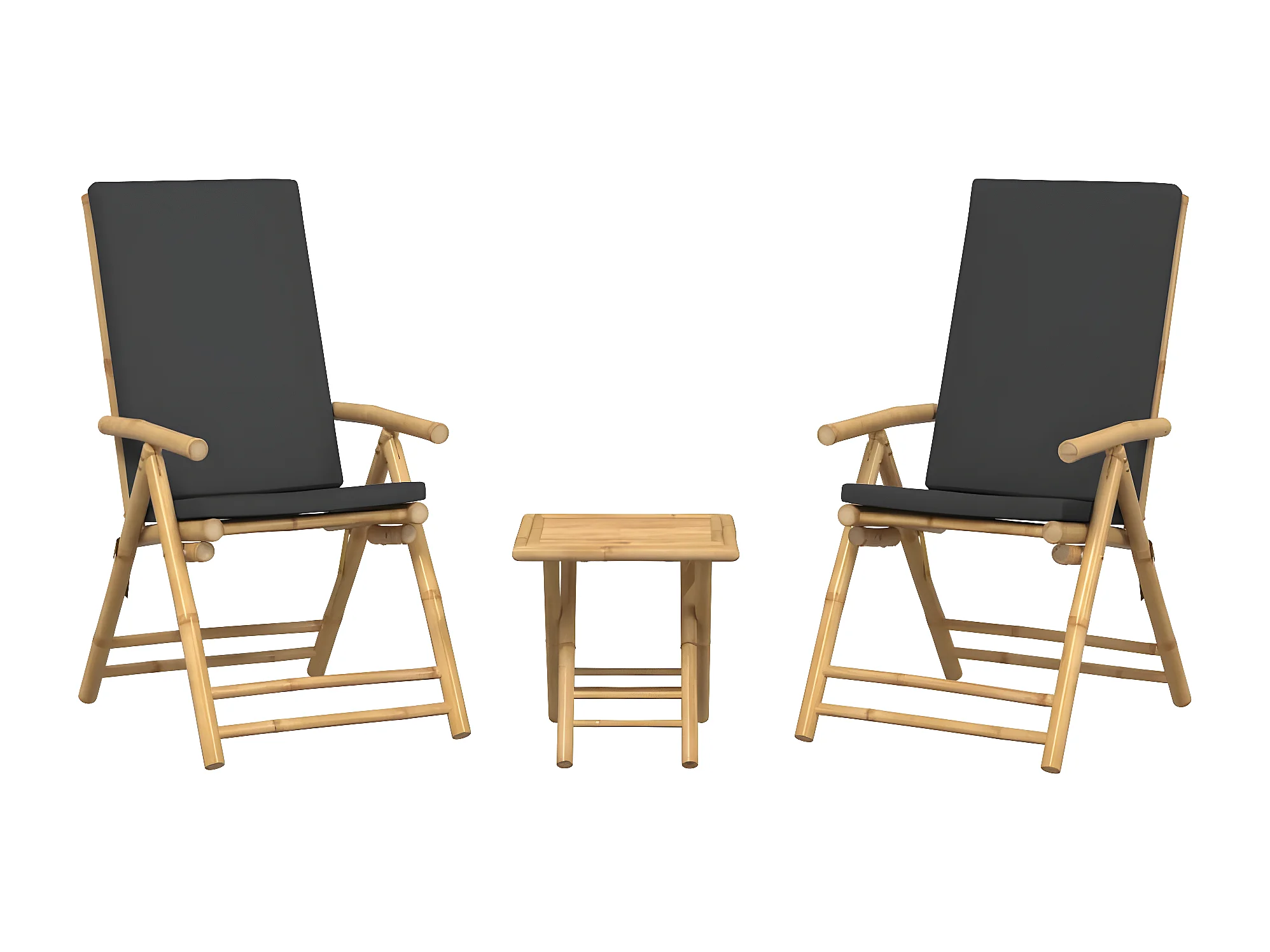 Ensemble de bistro pliante 3 pcs et coussins gris foncé bambou
