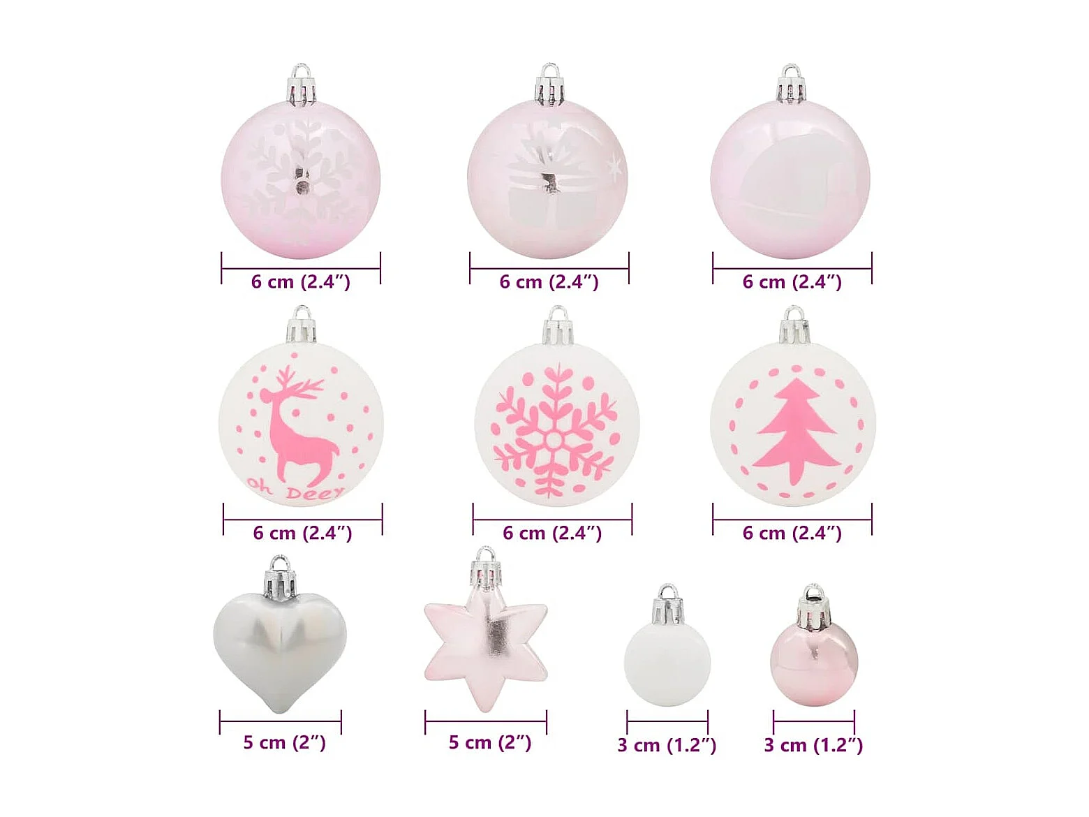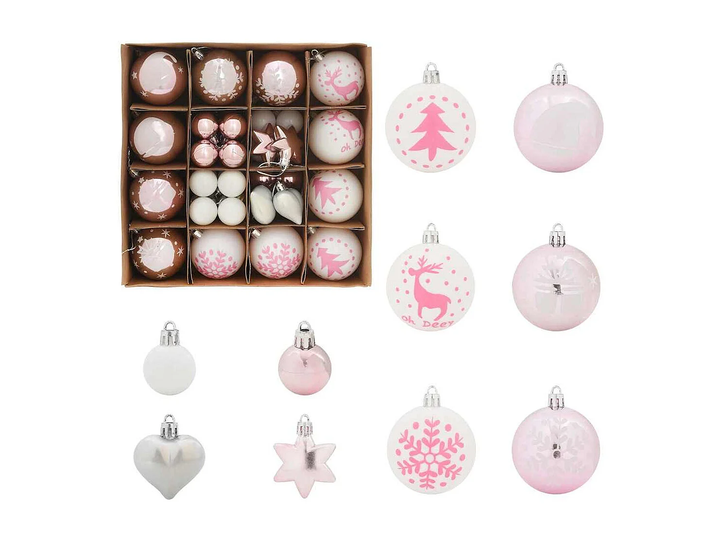 Ensemble de Boules de Noël 40 pcs Blanc et rose