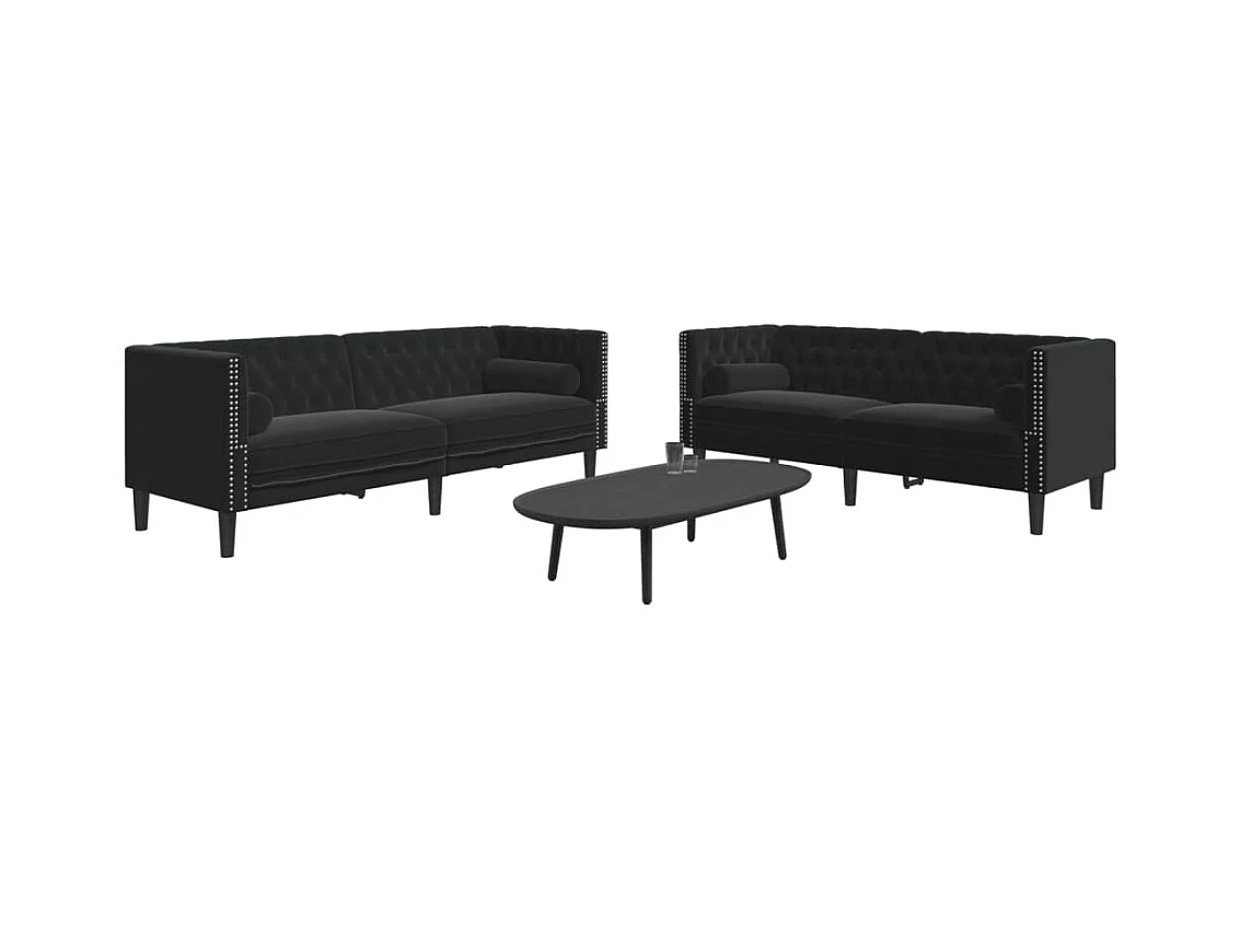 Ensemble de canapé Chesterfield et traversins 2pièces noir velours