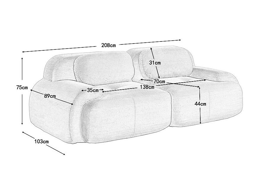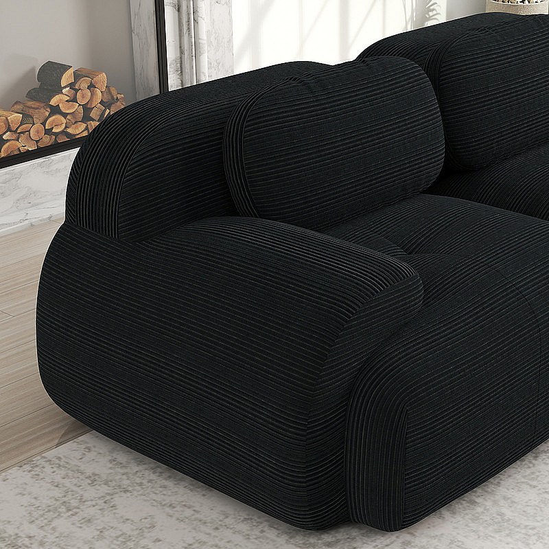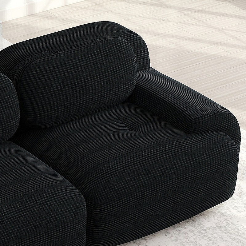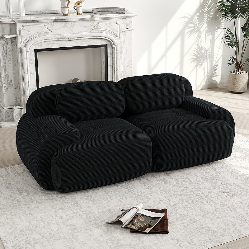 Ensemble de canapé modulable en Velours côtelé: canapé 2 places - avec 2 oreillers - 208x103x75cm - Noir