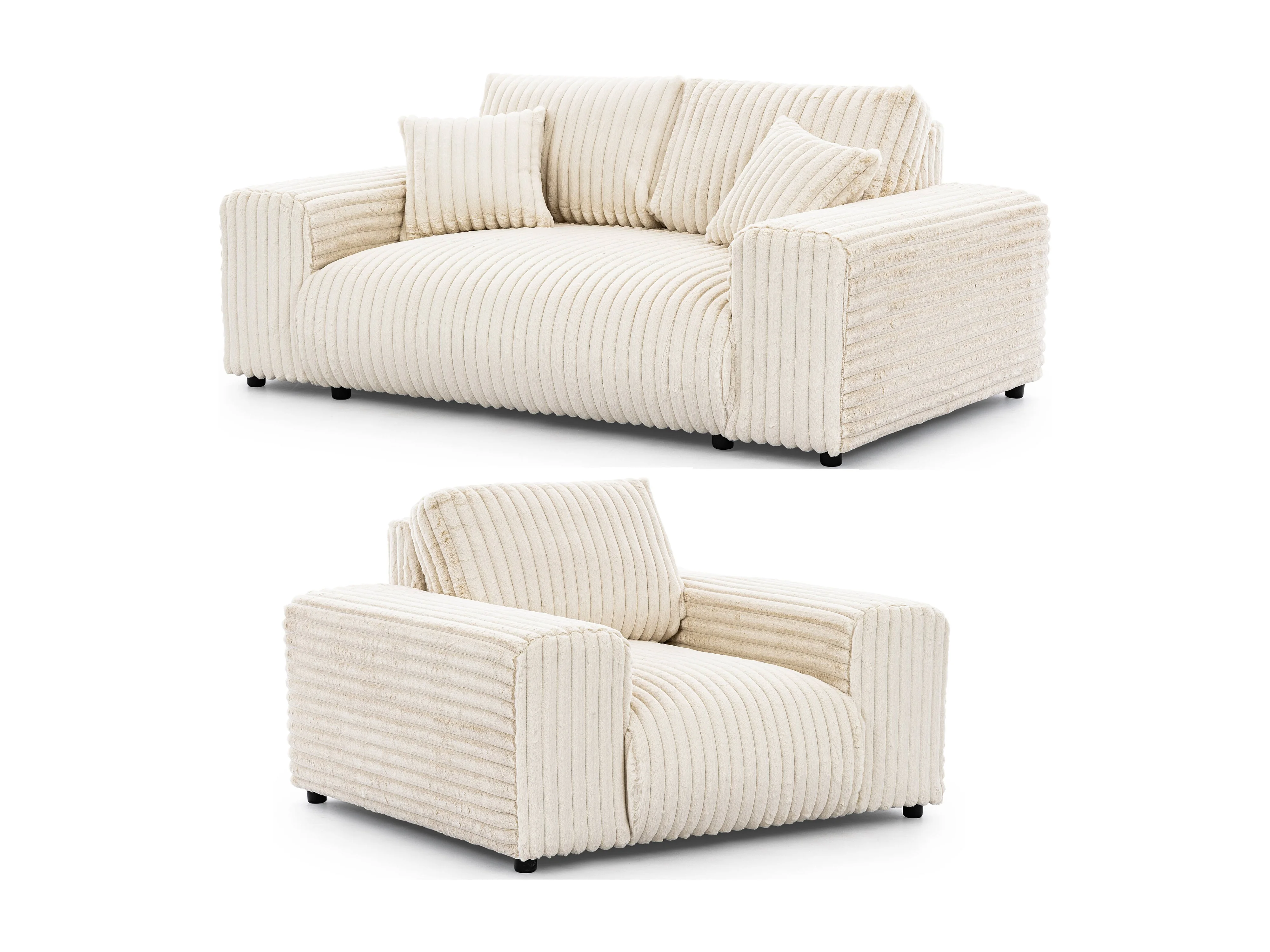 Ensemble de canapés 2+1 (2 places et fauteuil) 2+1 en velours côtelé pelucheux beige clair MOLLIS