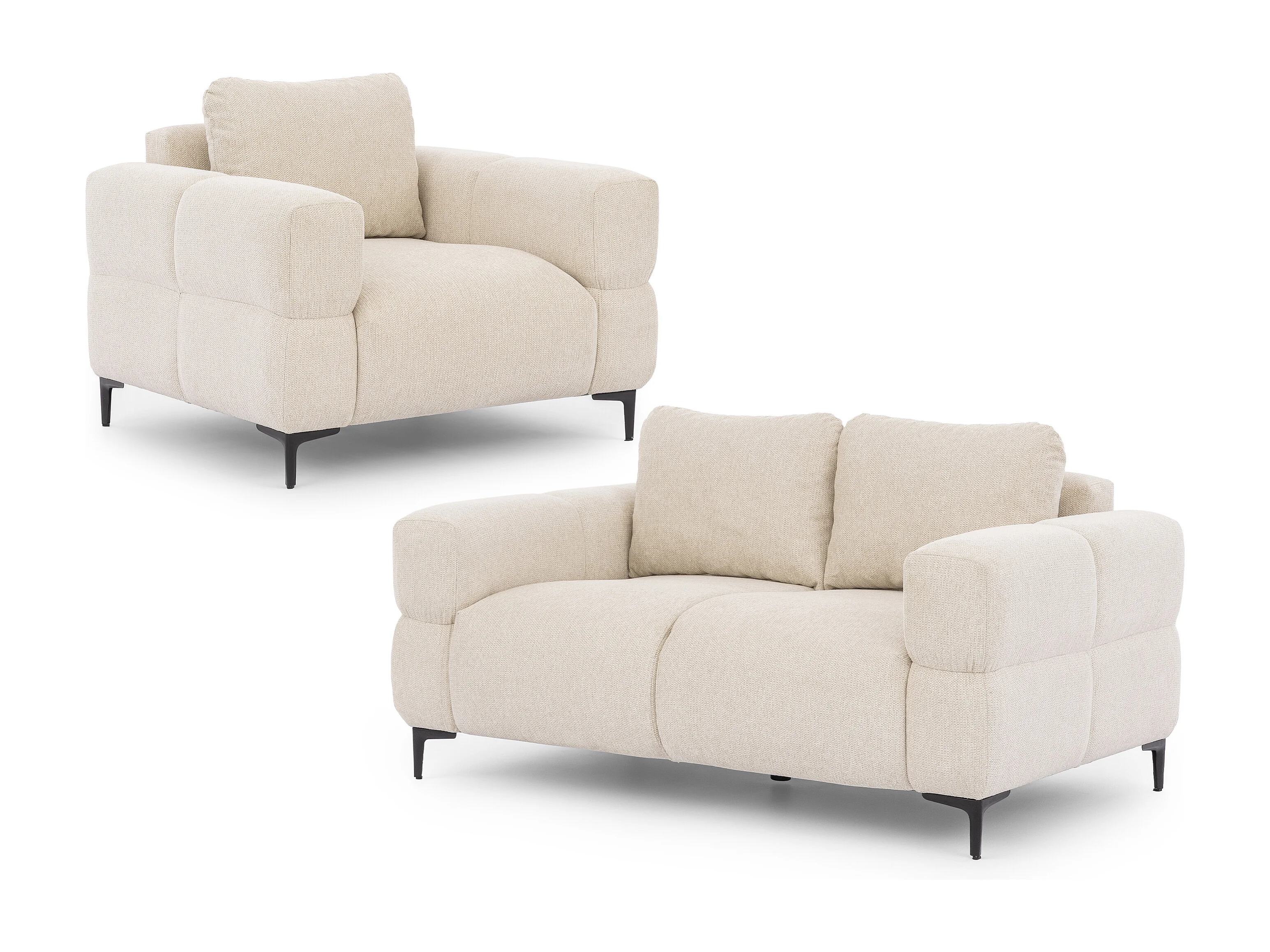 Ensemble de canapés 2+1 (2 places et fauteuil) au design bubble en tissu texturé doux de couleur beige clair CARDEA
