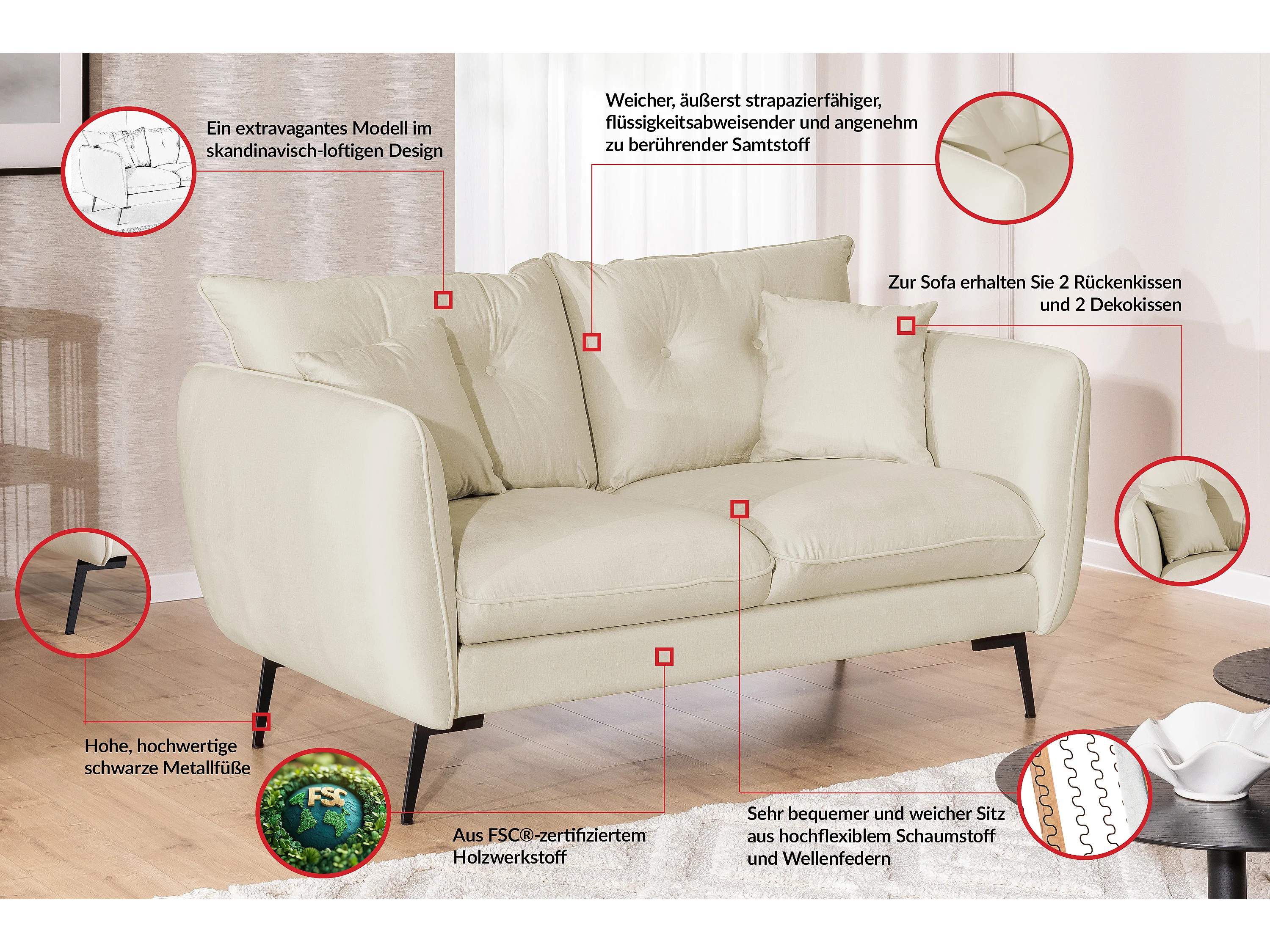 Ensemble de canapés 2+1 en tissu avec de hauts pieds en métal noir Nordloft