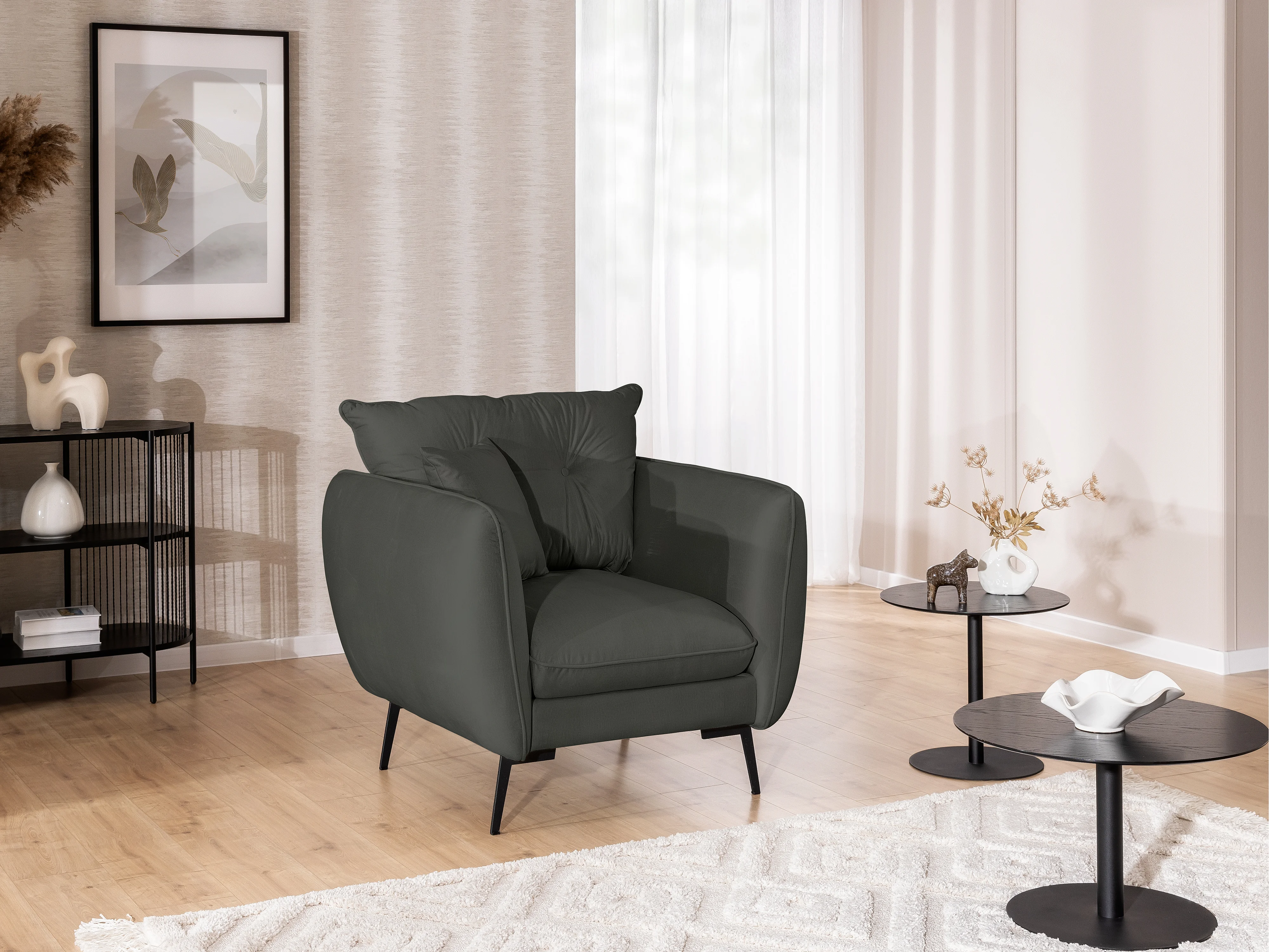 Ensemble de canapés 2+1 en tissu avec de hauts pieds en métal noir Nordloft