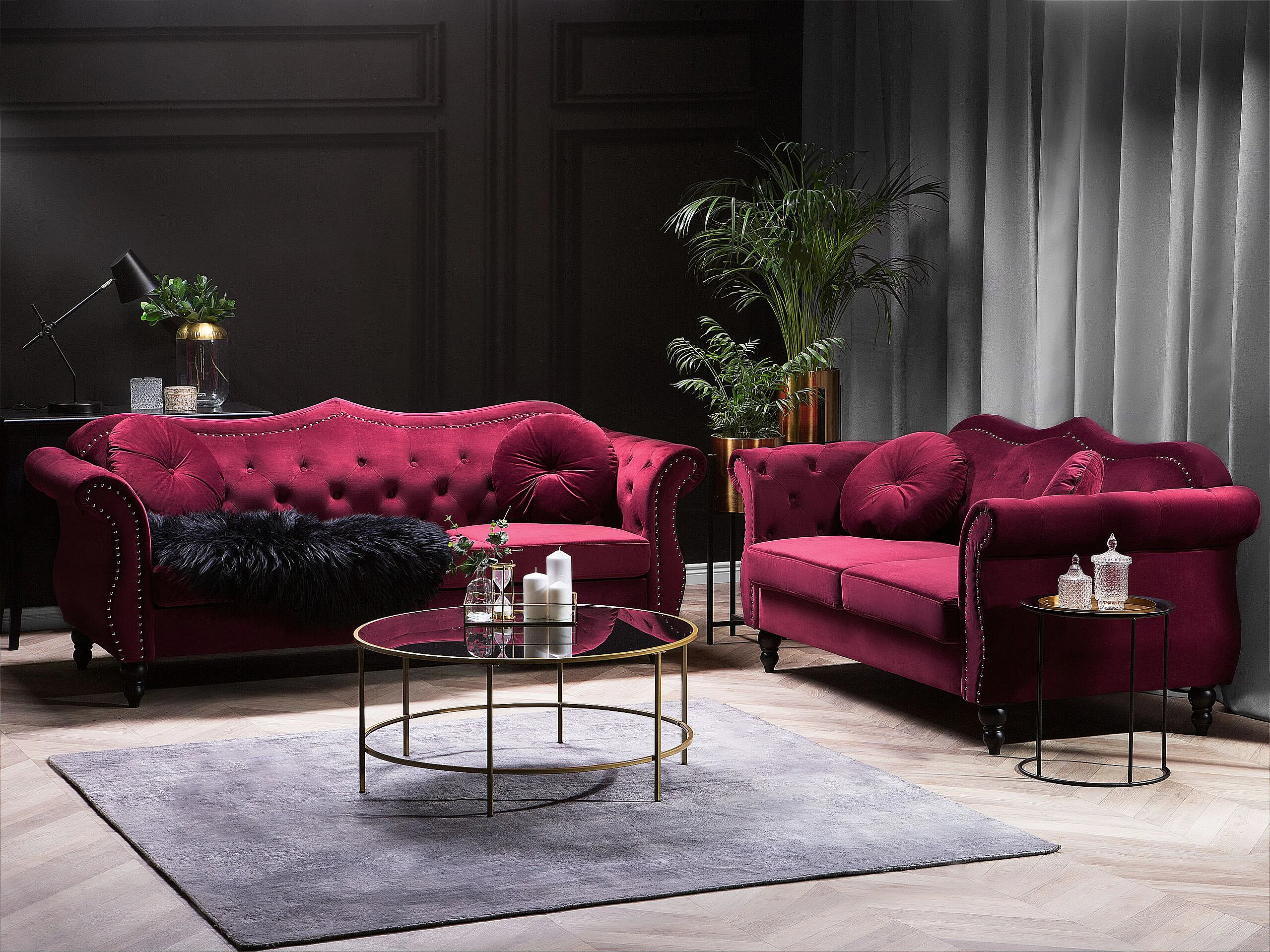 Ensemble de salon 5 places SKIEN Velours Rouge foncé
