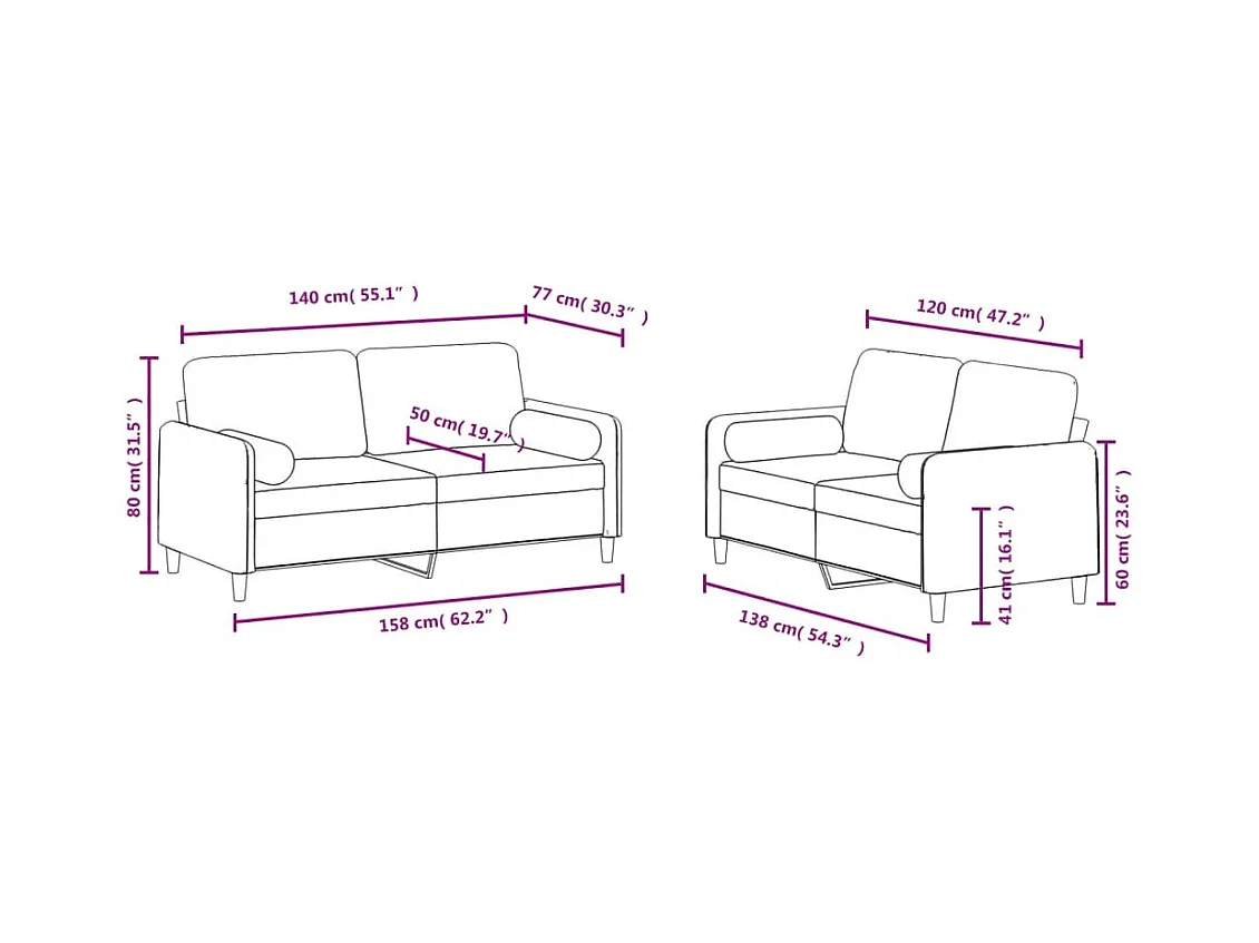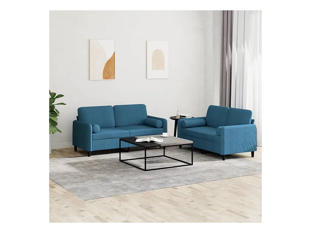 Ensemble de canapés 2 pcs avec coussins bleu velours
