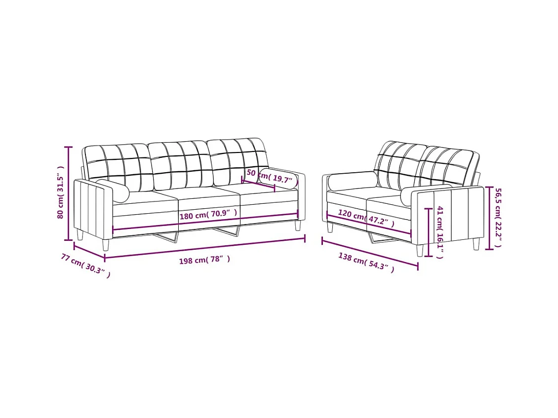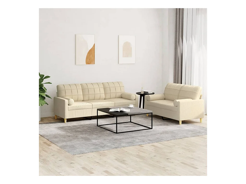 Ensemble de canapés 2 pcs avec coussins crème tissu