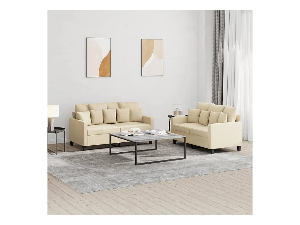Ensemble de canapés 2 pcs avec coussins Crème Tissu