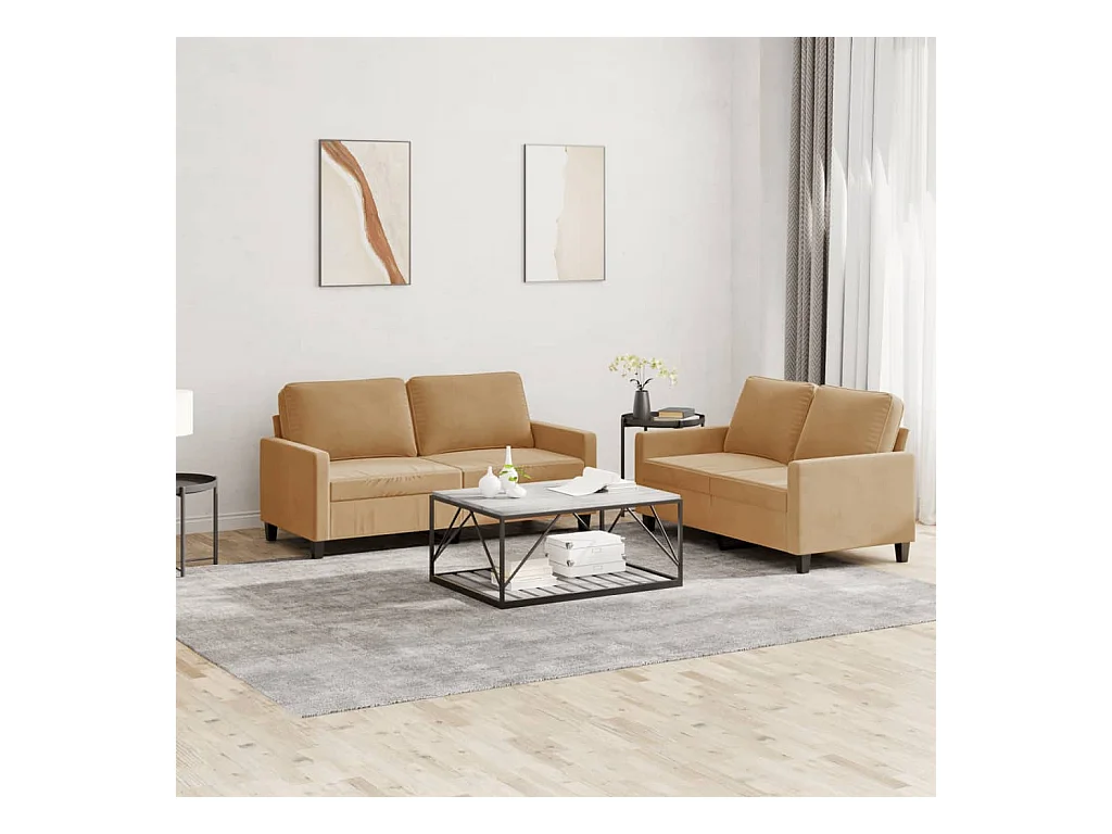 Ensemble de canapés 2 pcs avec coussins Marron Velours