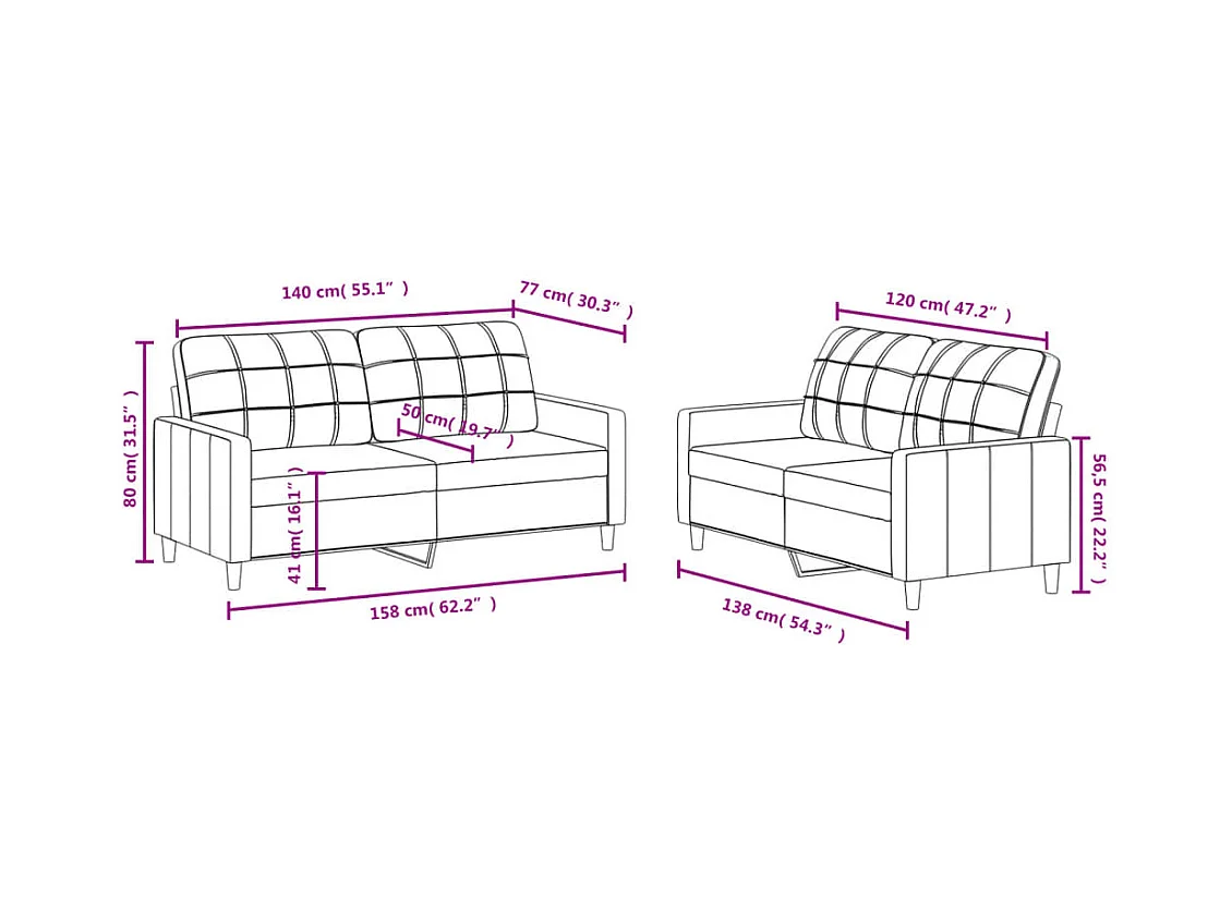 Ensemble de canapés 2 pcs avec coussins Rouge bordeaux Tissu