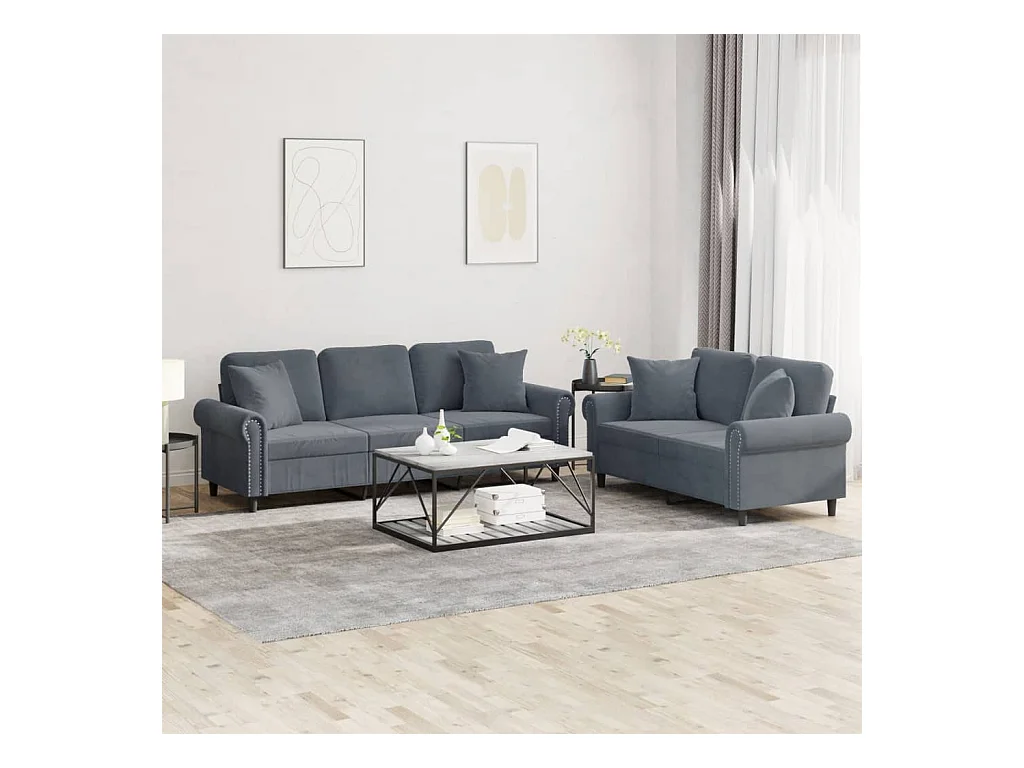 Ensemble de canapés 2 pièces avec coussins gris foncé velours