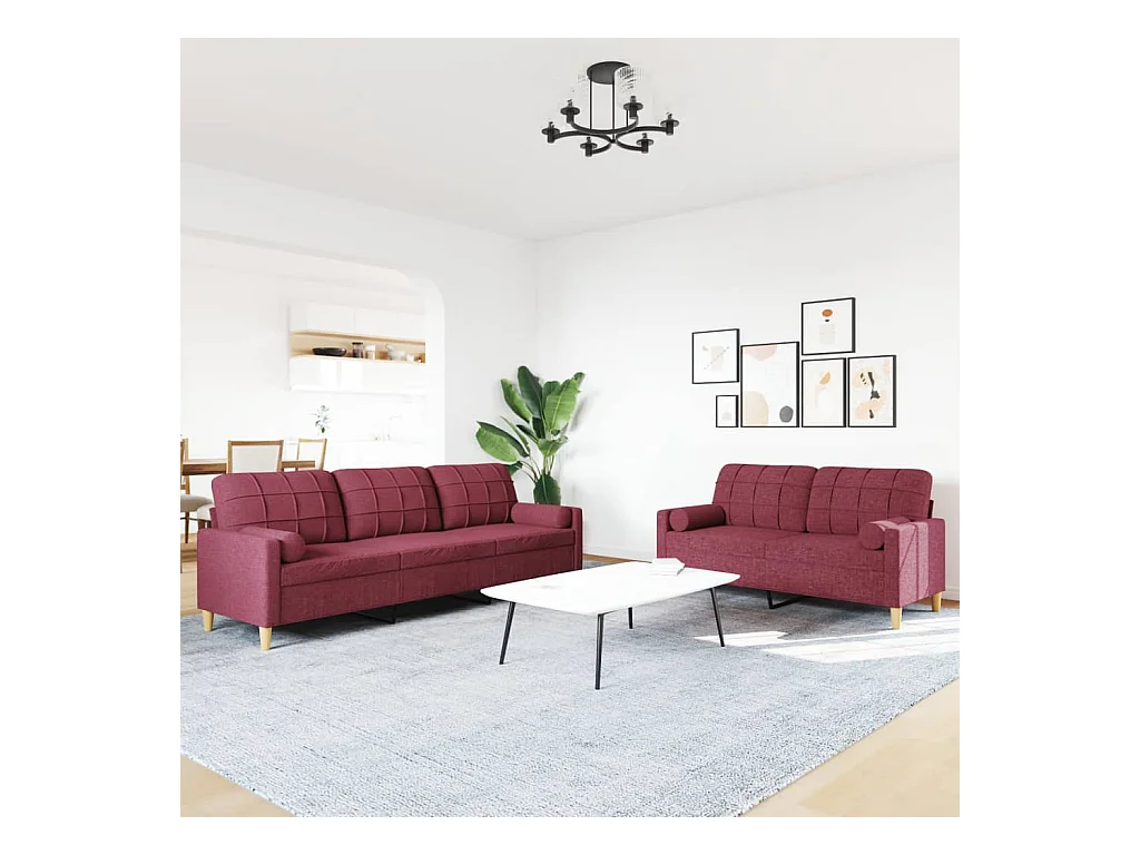 Ensemble de canapés 2 pièces coussins décoratifs bordeaux tissu