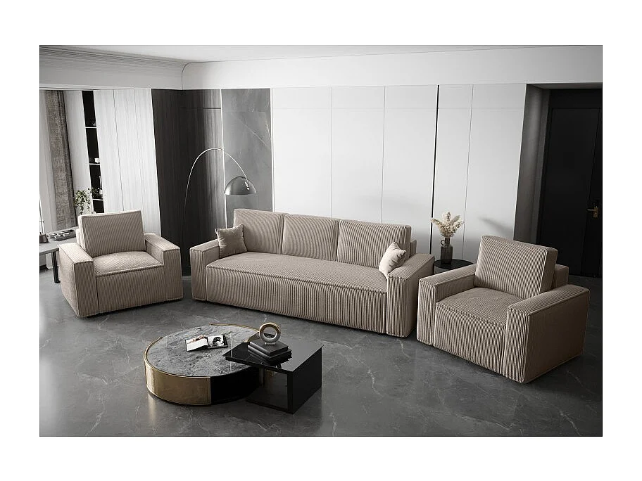 Ensemble de canapés 3+1+1 convertible AMBRI en velours côtelé