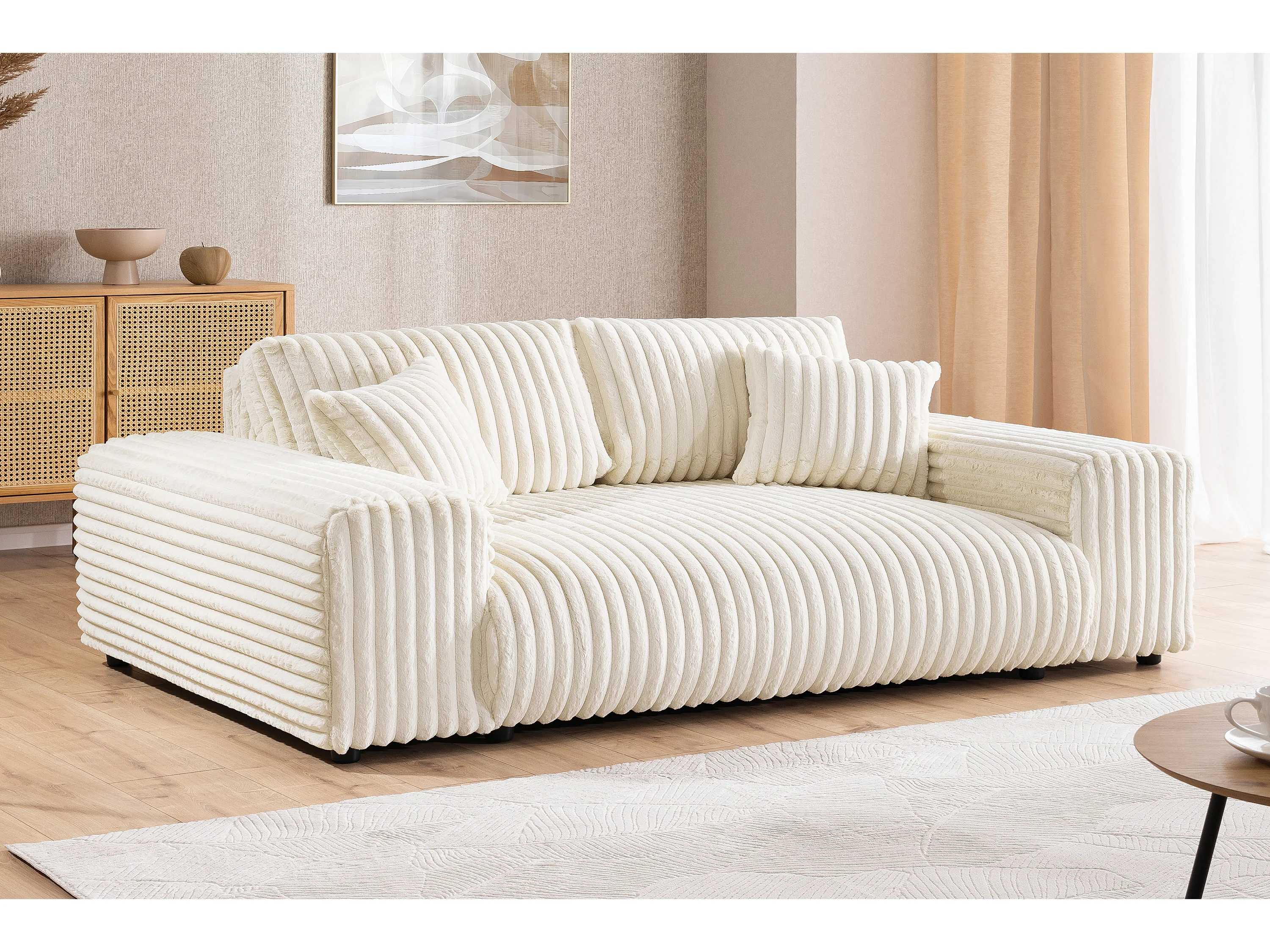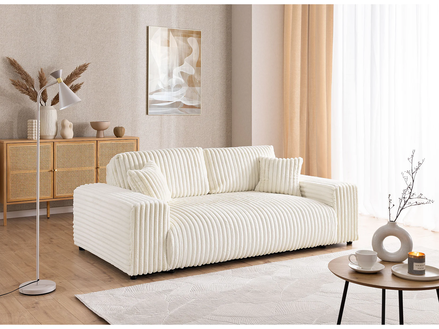 Ensemble de canapés 3+1 (3 places et fauteuil) 3+2+1 en velours côtelé pelucheux beige clair MOLLIS
