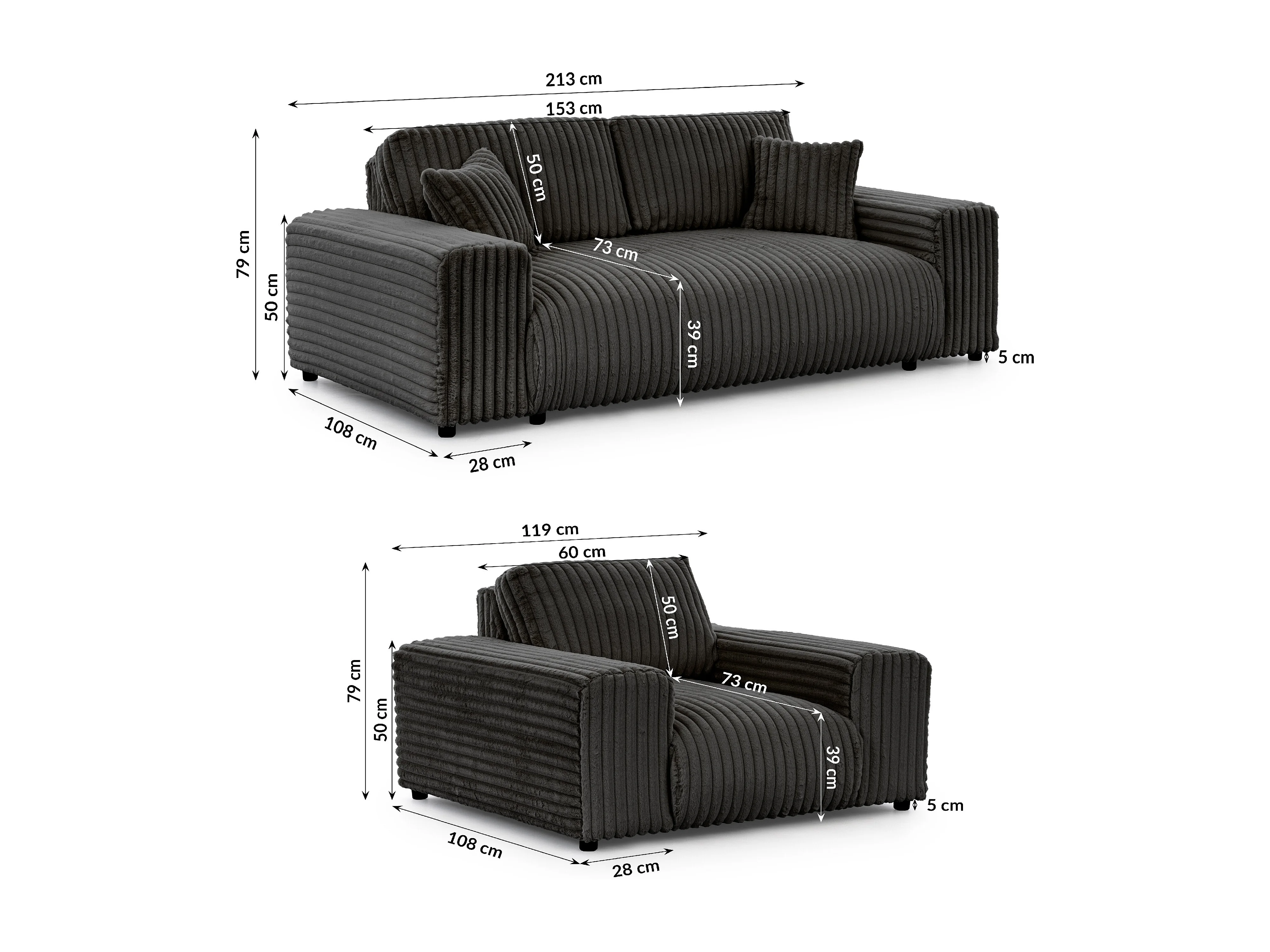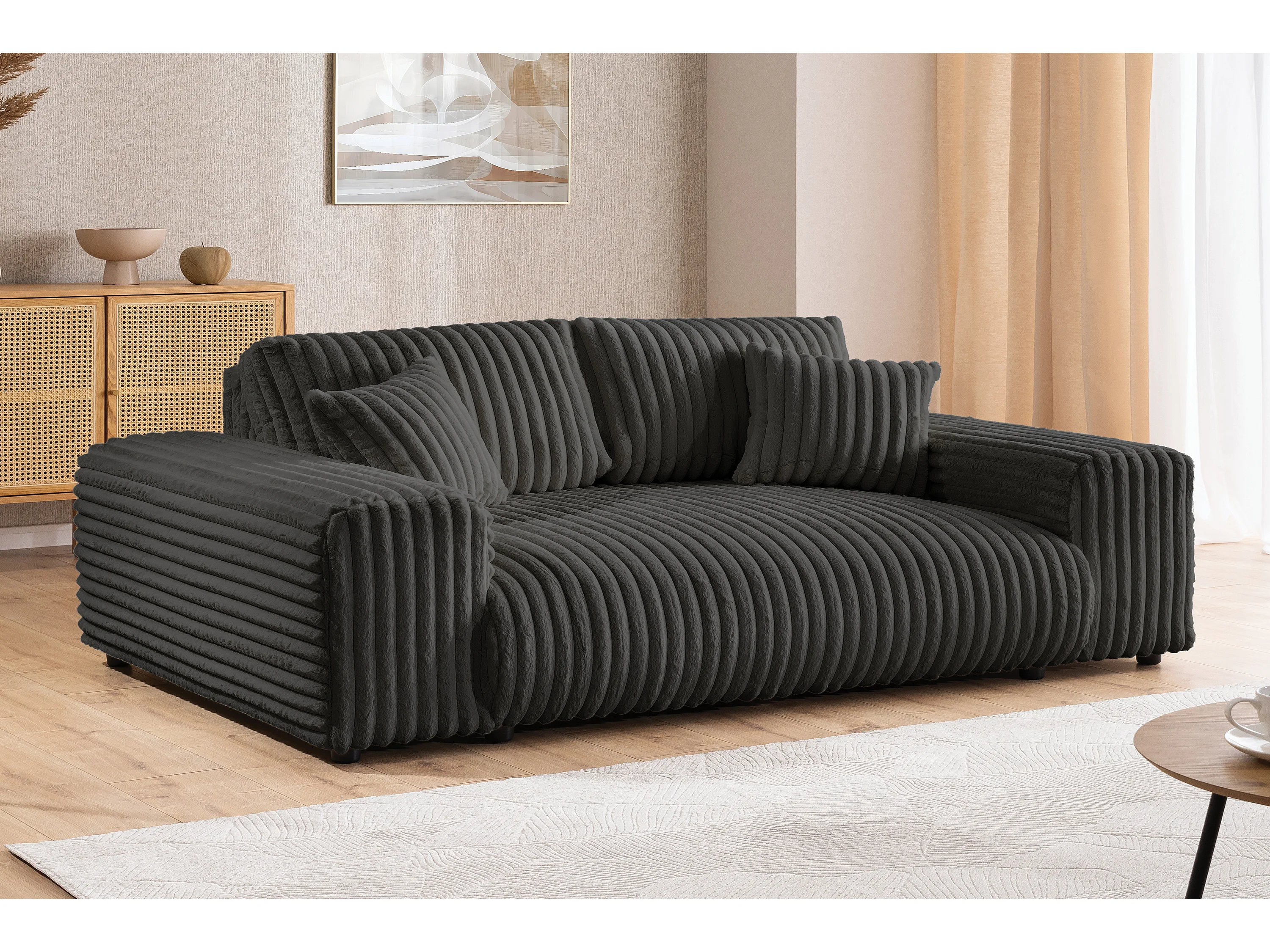Ensemble de canapés 3+1 (3 places et fauteuil) 3+2+1 en velours côtelé pelucheux gris foncé MOLLIS