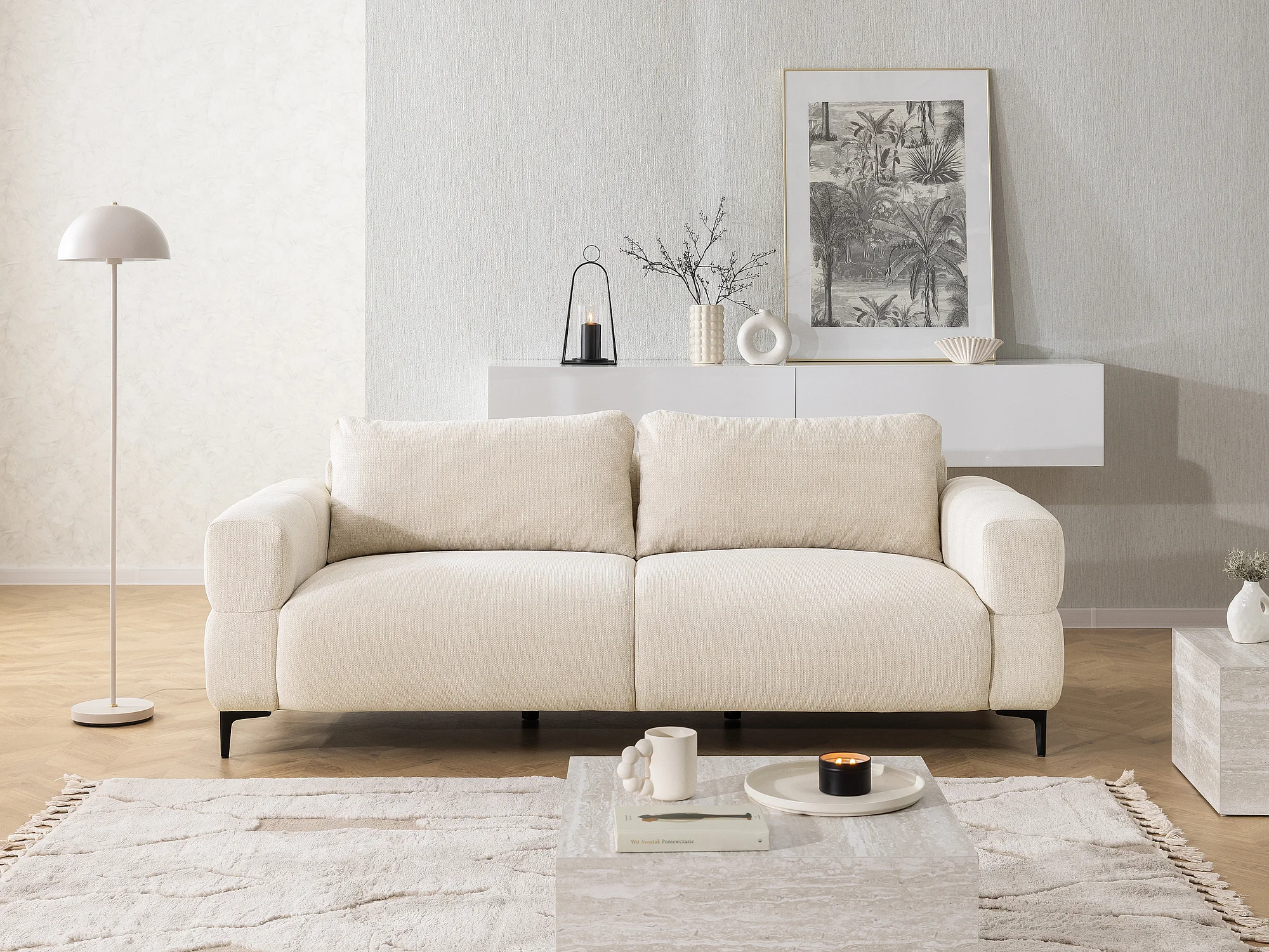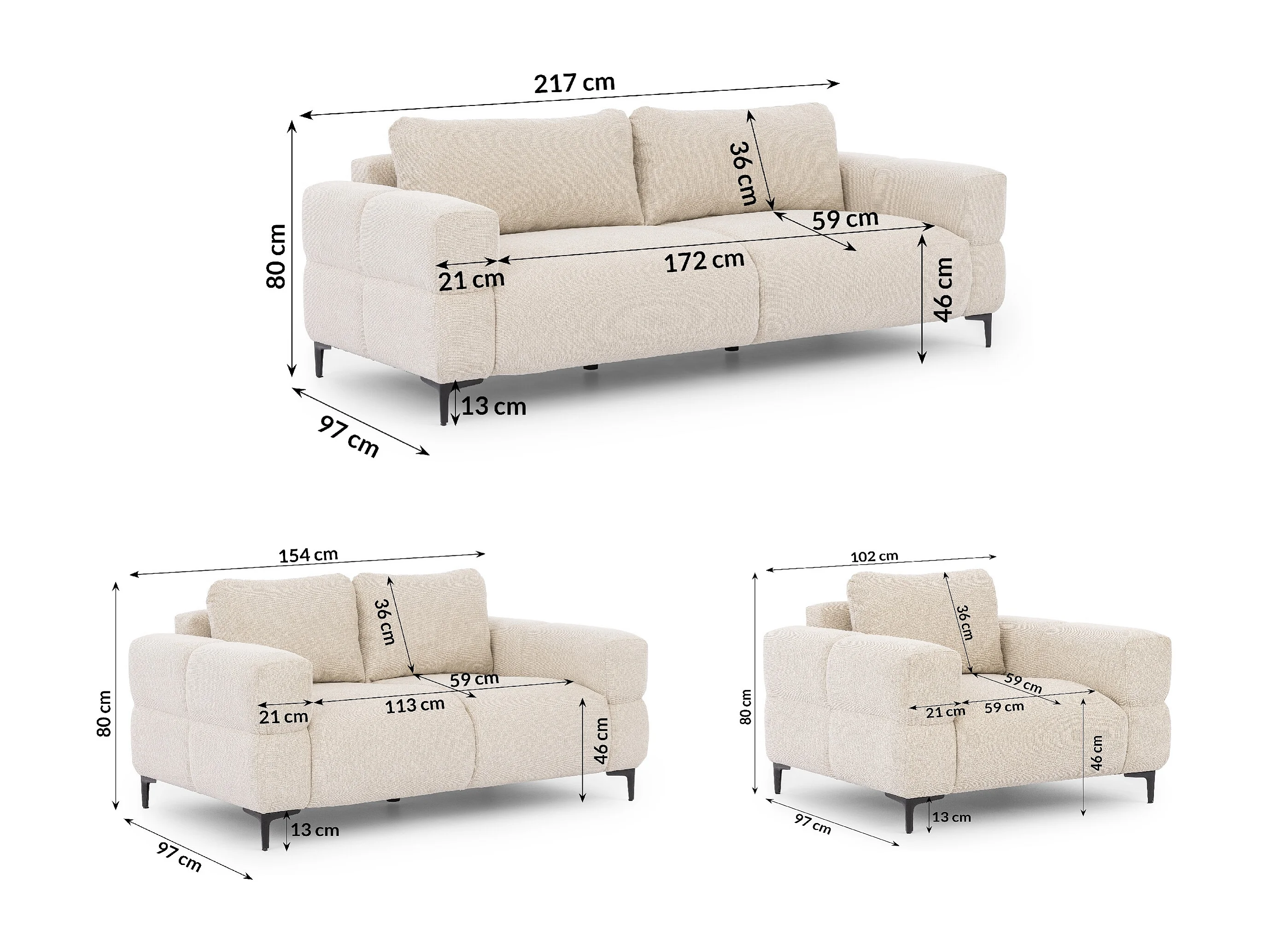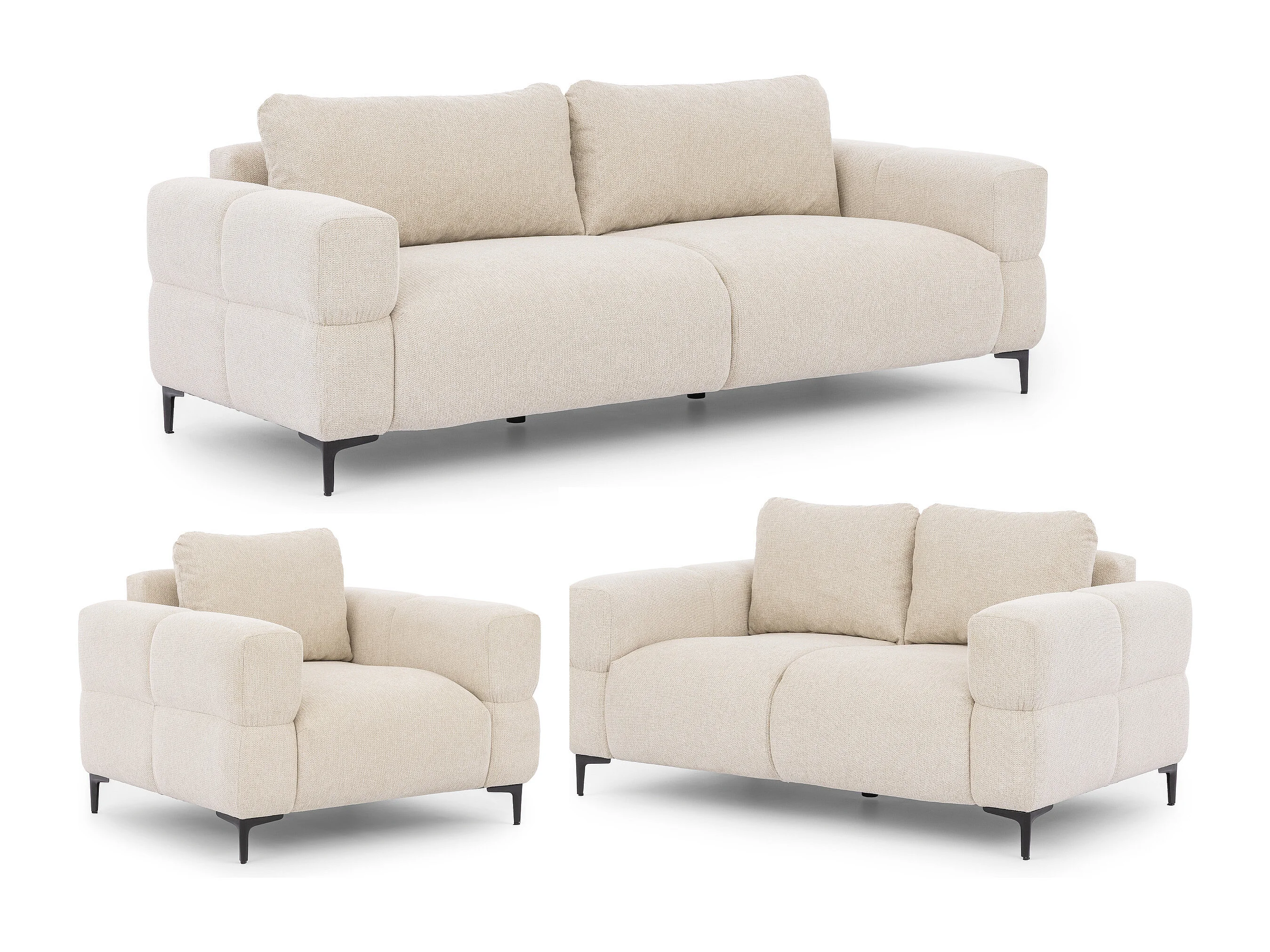 Ensemble de canapés 3+2+1 (3 places, 2 places et fauteuil) au design bubble en tissu texturé doux de couleur beige clair CARDEA