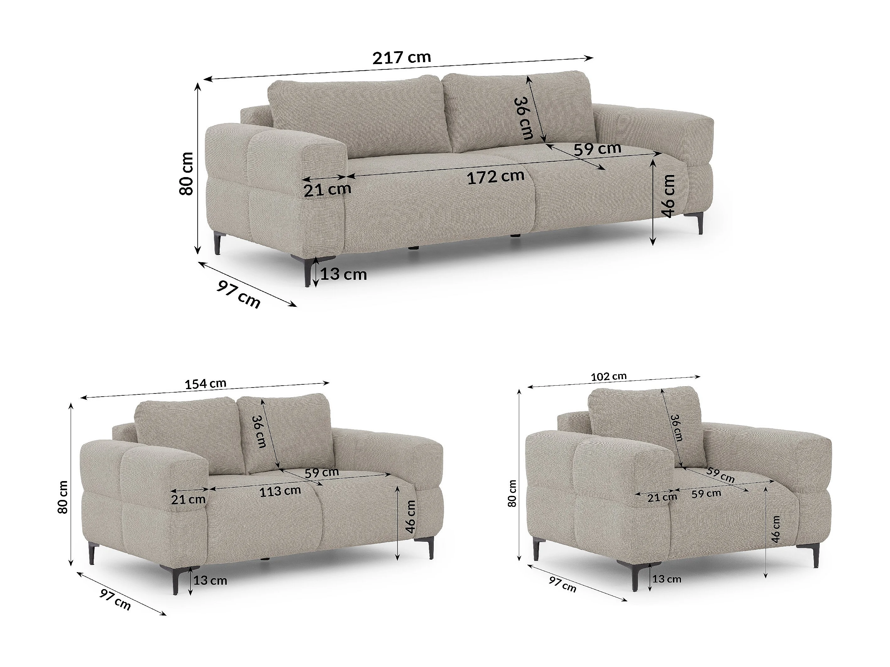 Ensemble de canapés 3+2+1 (3 places, 2 places et fauteuil) au design bubble en tissu texturé doux de couleur taupe CARDEA