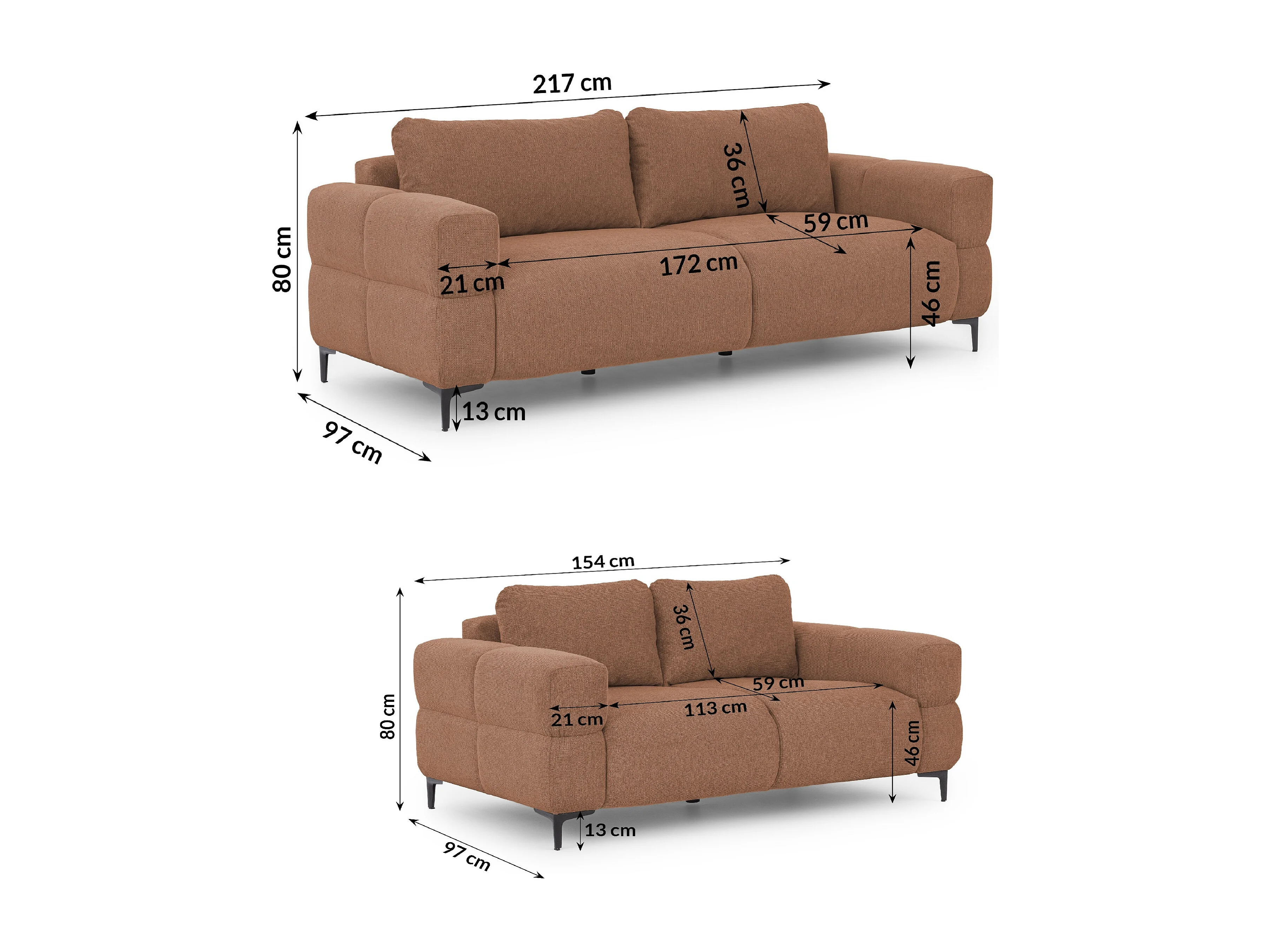 Ensemble de canapés 3+2 (3 places et 2 places) au design bubble en tissu texturé doux de couleur terre cuite CARDEA