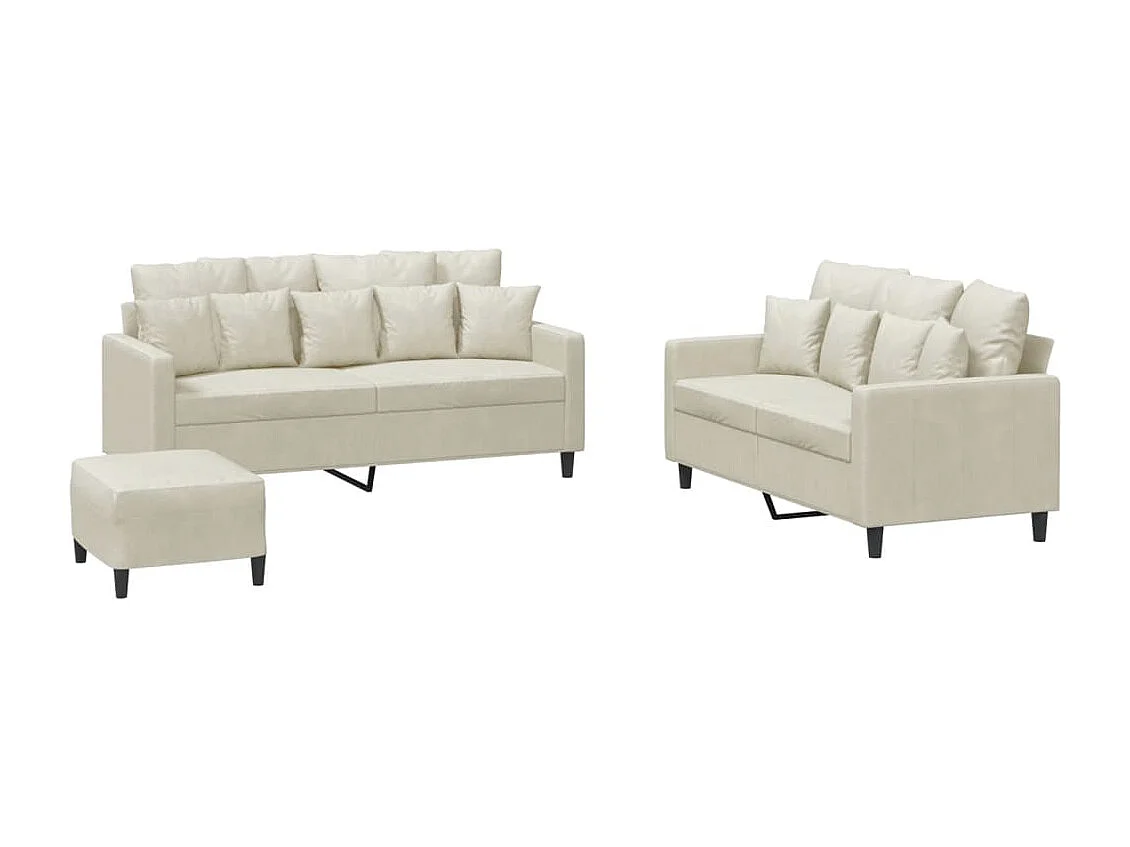 Ensemble de canapés 3 pcs avec coussins Crème Velours