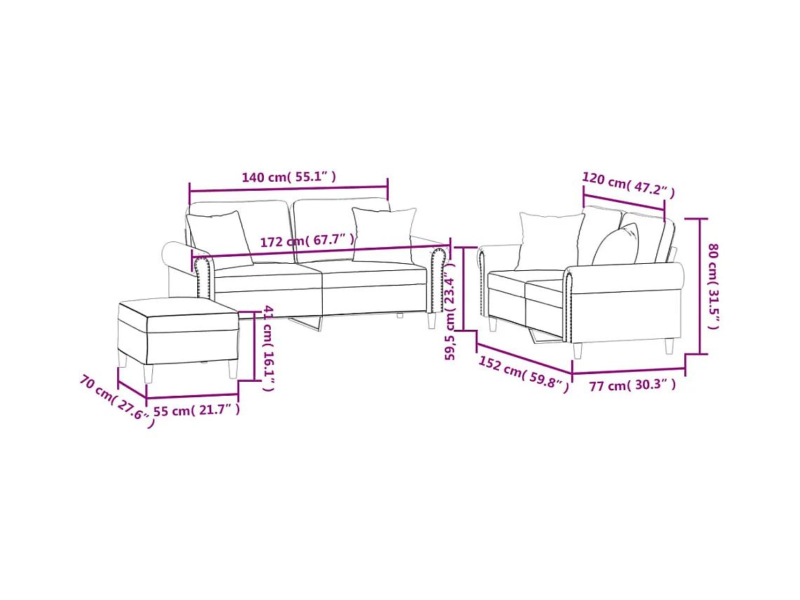 Ensemble de canapés 3 pcs avec coussins gris foncé velours
