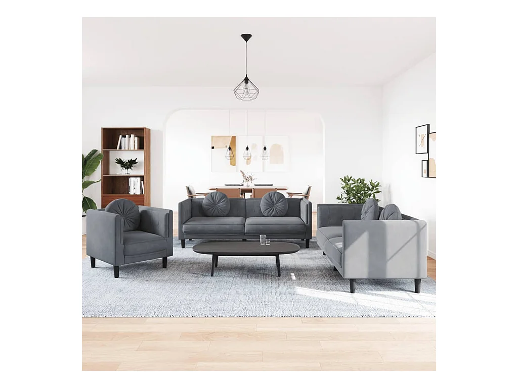 Ensemble de canapés 3 pcs avec coussins gris foncé velours