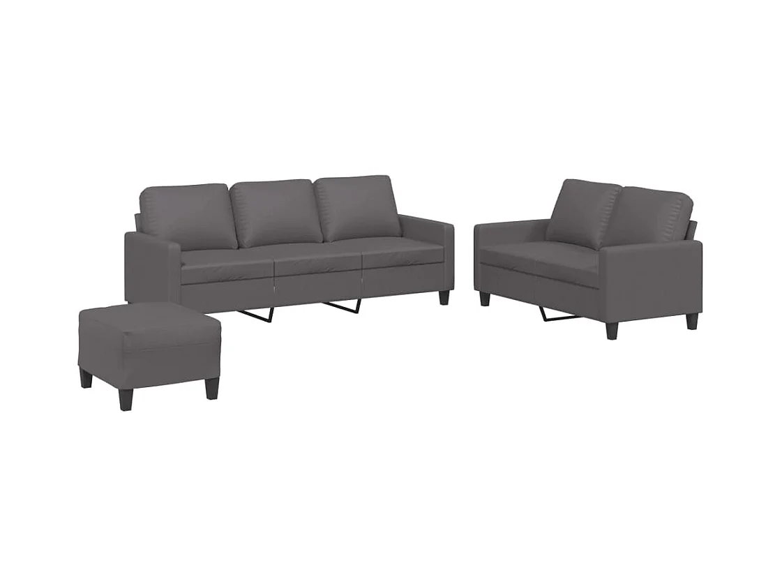 Ensemble de canapés 3 pcs avec coussins Gris Similicuir