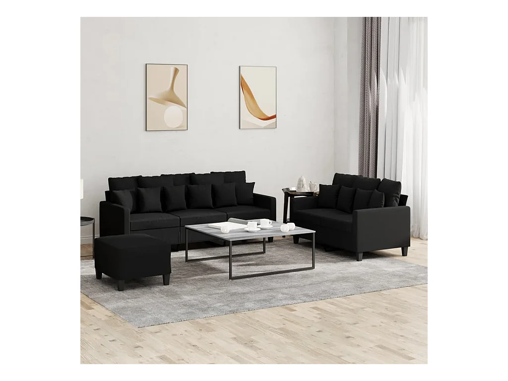 Ensemble de canapés 3 pcs avec coussins Noir Tissu