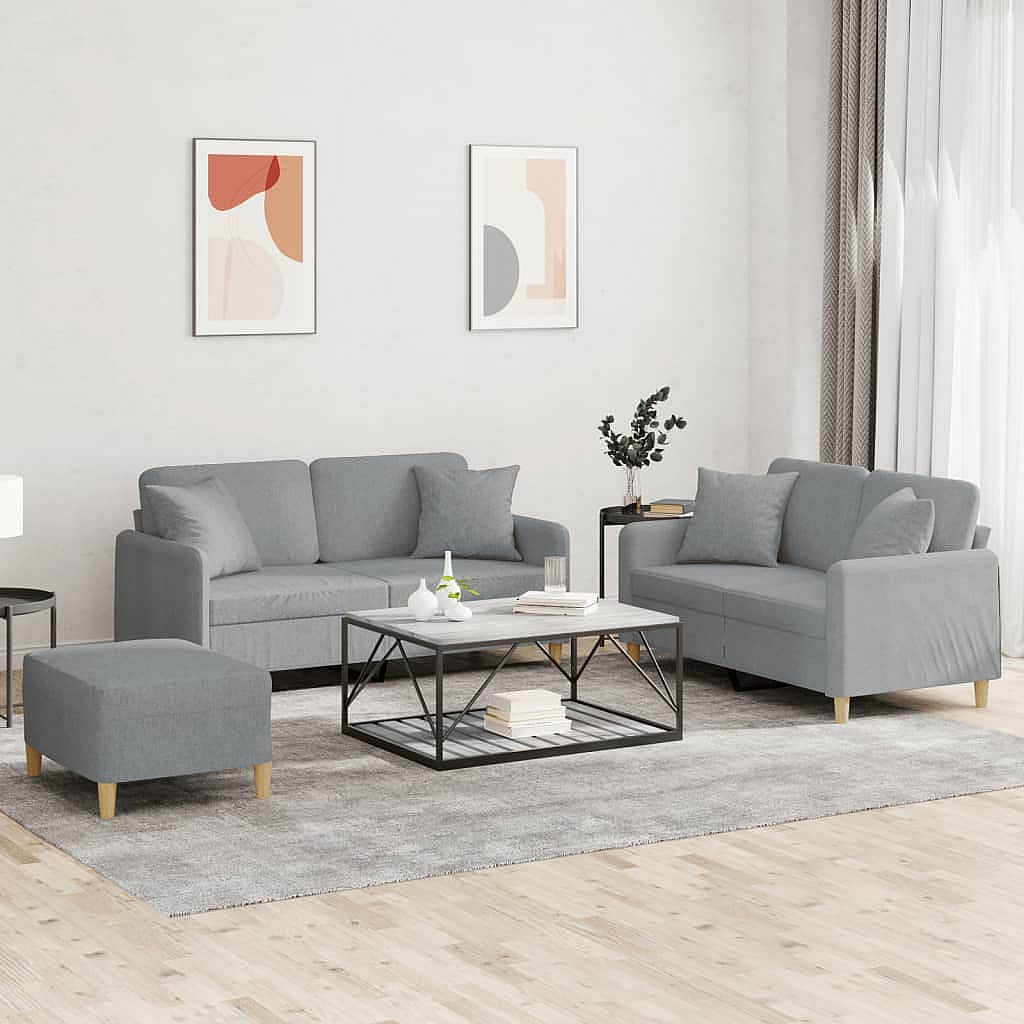 Ensemble de canapés 3 pcs coussins gris clair tissu