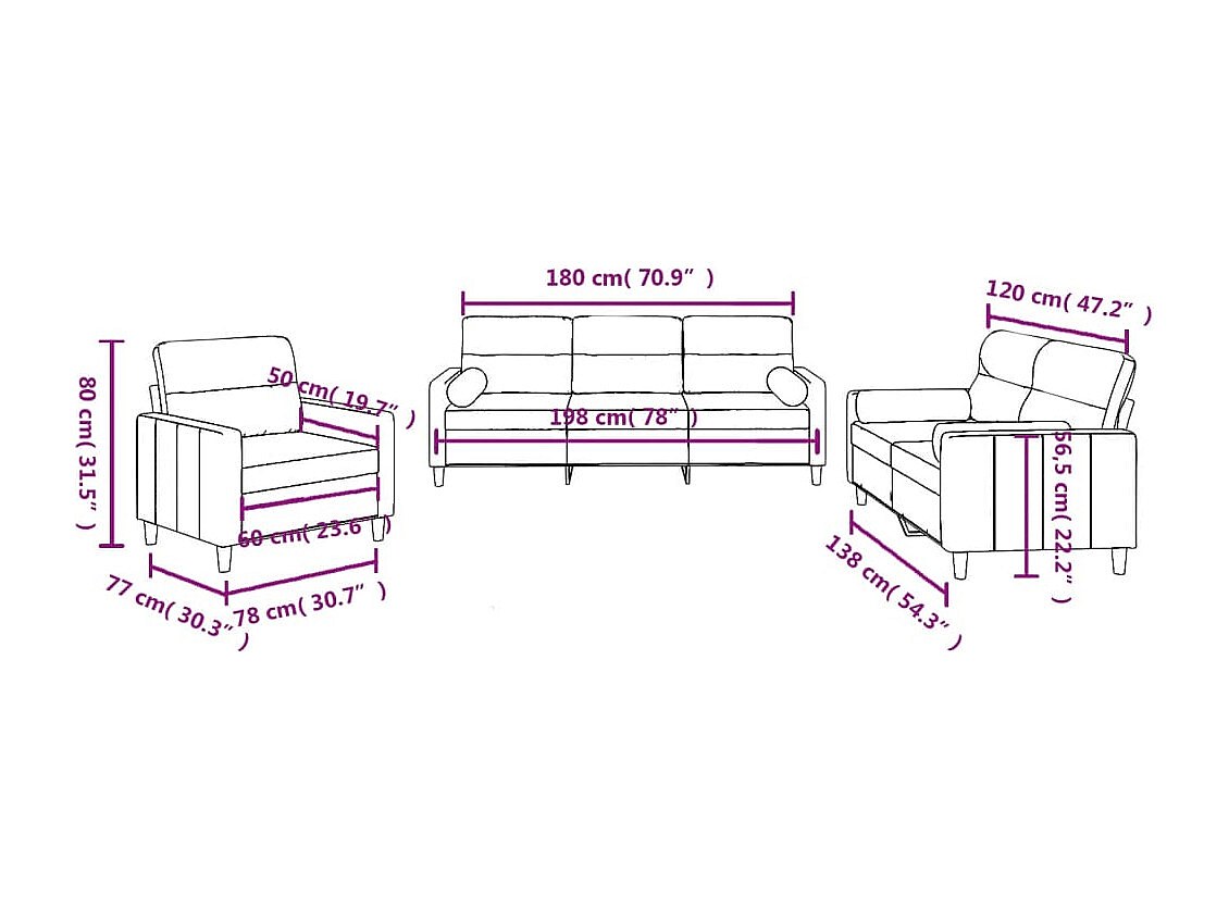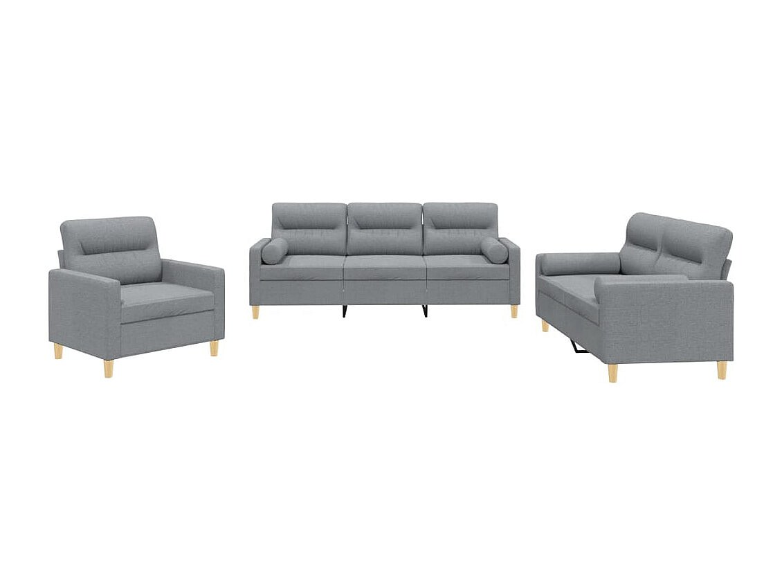 Ensemble de canapés 3 pcs coussins gris clair tissu
