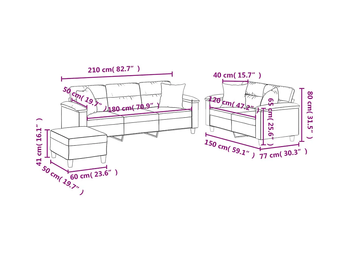 Ensemble de canapés 3 pcs coussins Gris foncé Tissu microfibre